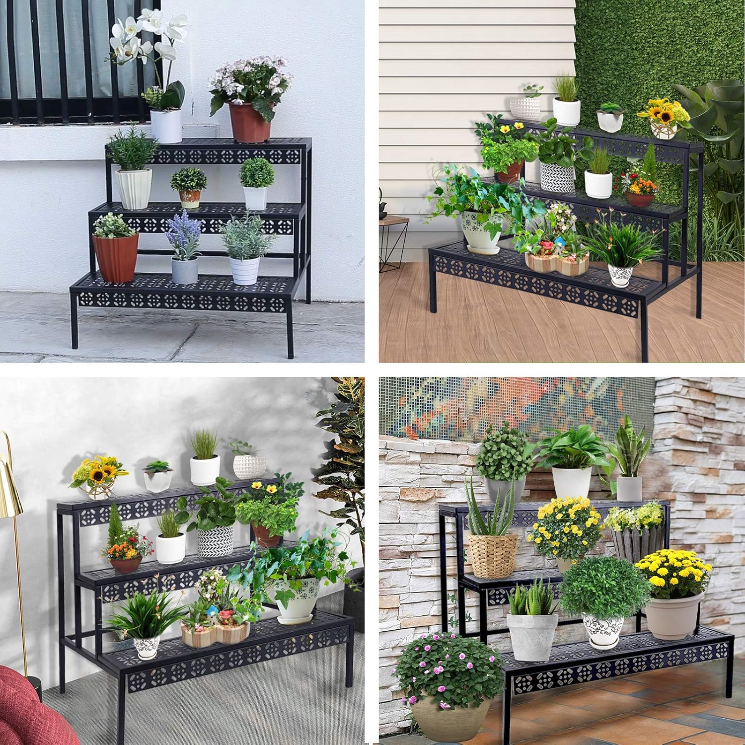 - 【3-Tier Plant Stand】This 3-tier plant stand has multiple functions, which is perfect for patio, garden, balcony, etc. The ladder style lets your plants get more air and sunlight.