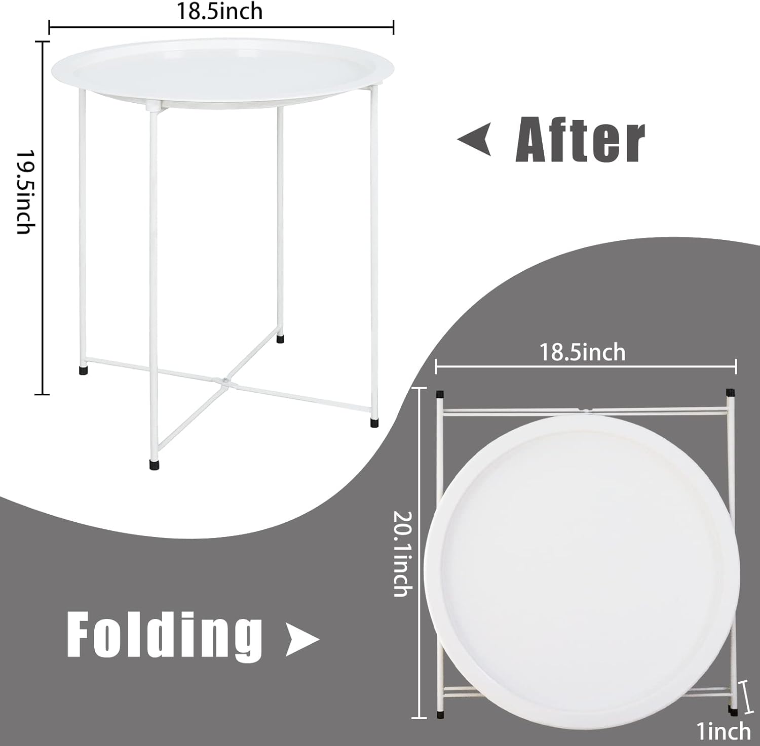 - ✔SIZE & PACKING : The table is Φ18.5 x 19.4 inches inches when expanding and 20*18.5*0.98 inches after folded, which is suit desk for small spaces. Every table is well packed in the well protective carton.