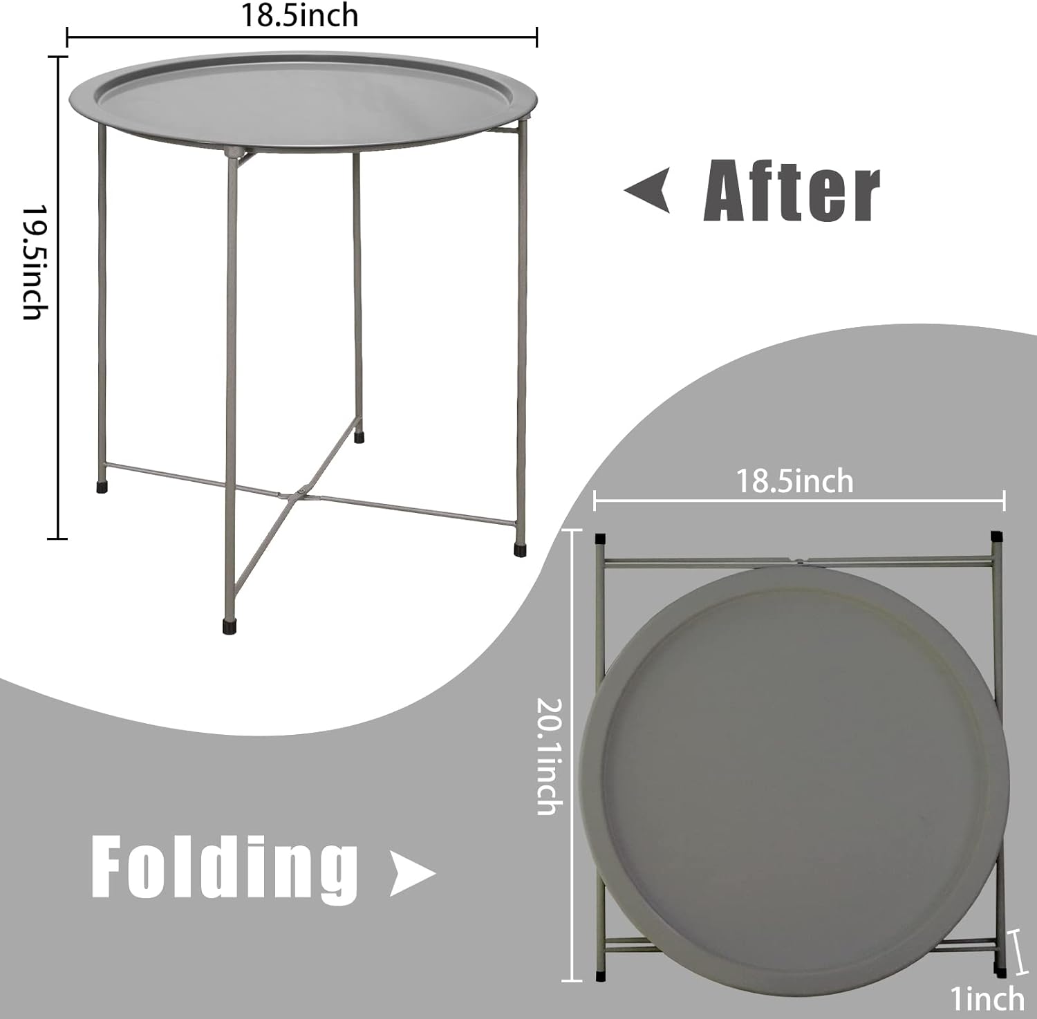 Garden 4 you End Table Metal Side Table Grey Round Folding Tray Cyan Sofa Small Accent Fold-able Table, Round End Table Tray, Next to Sofa Table, Snack Table for Living Room and Bed Room