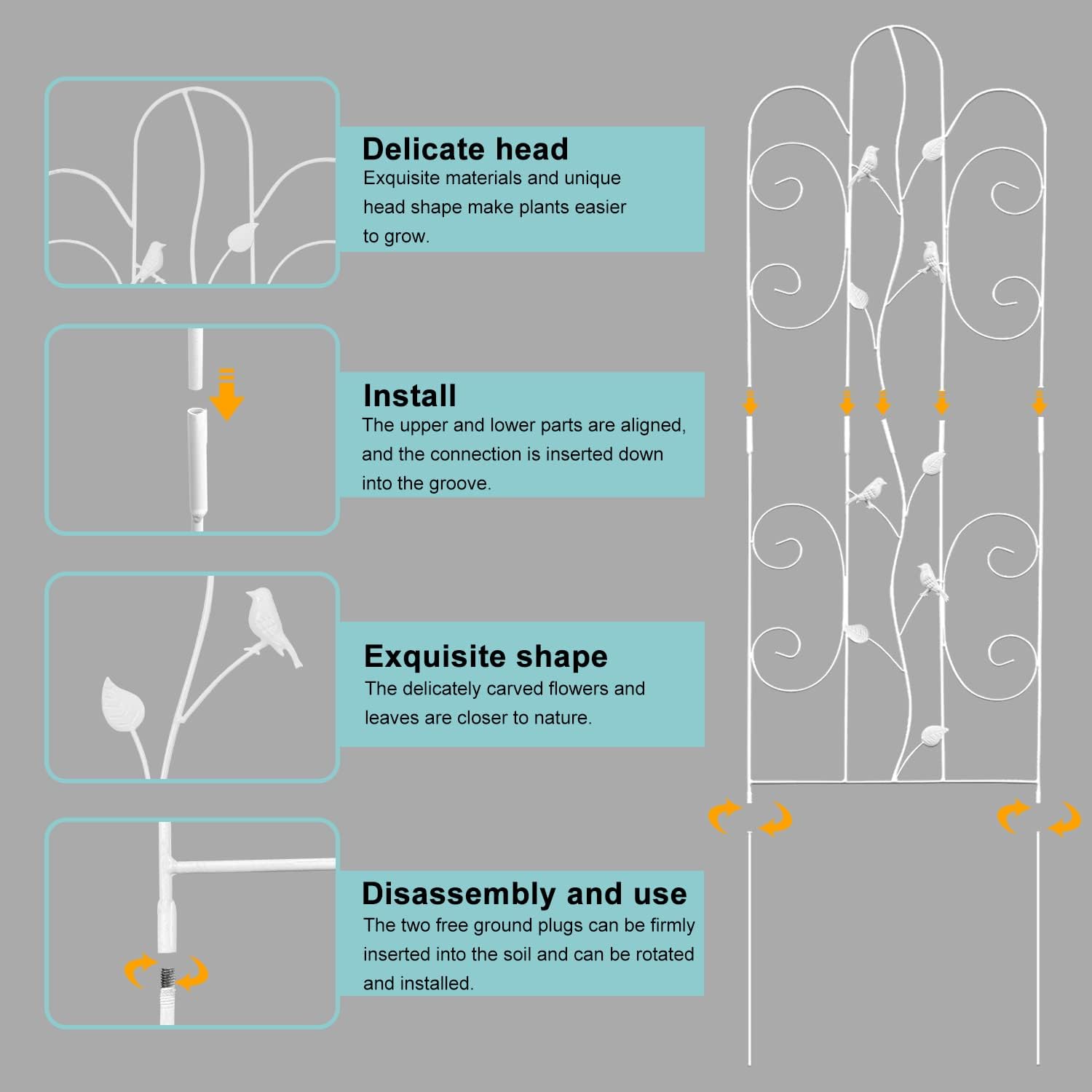 - EASY TO INSTALL PLANT TRELLIS: This plant support for indoor plants is no need to disassemble the assembly, no screws, no wrench, no screwdriver, just simply stick and secure the trellis legs stake into ground. What an easy plant trellis for climbing plants outdoor is!
