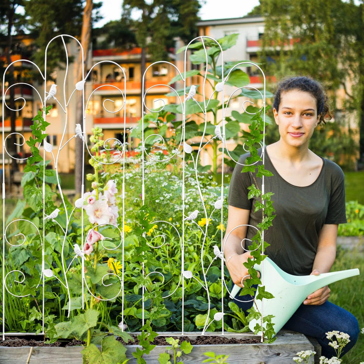 - MULTI PURPOSE METAL TRELLIS: This garden trellis for vegetables is suitable for clematis, climbing roses, vines, morning glories, beans, sweet peas, tomatoes, other vegetables, and more. You can also use bean trellis to form a sturdy screen or corner with more of it and provide support for climbing plants trellis while adding height and variety to your lovely garden