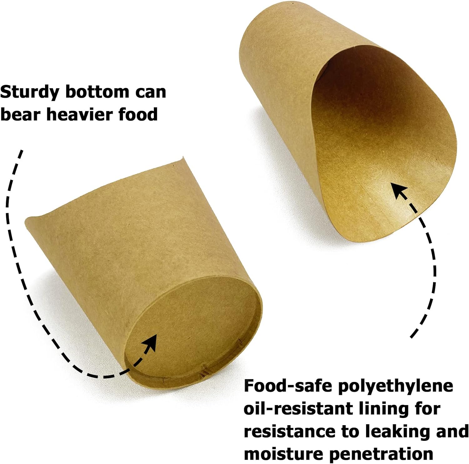 - [Resistance to Moisture Leakage and Penetration] - Each of kraft paper cups holder has food-safe oil-resistant lining for resistance to leaking and moisture penetration. Giving your customer or friends a delightful food cups packed with delicious without any greasy mess or embarrassing stains!