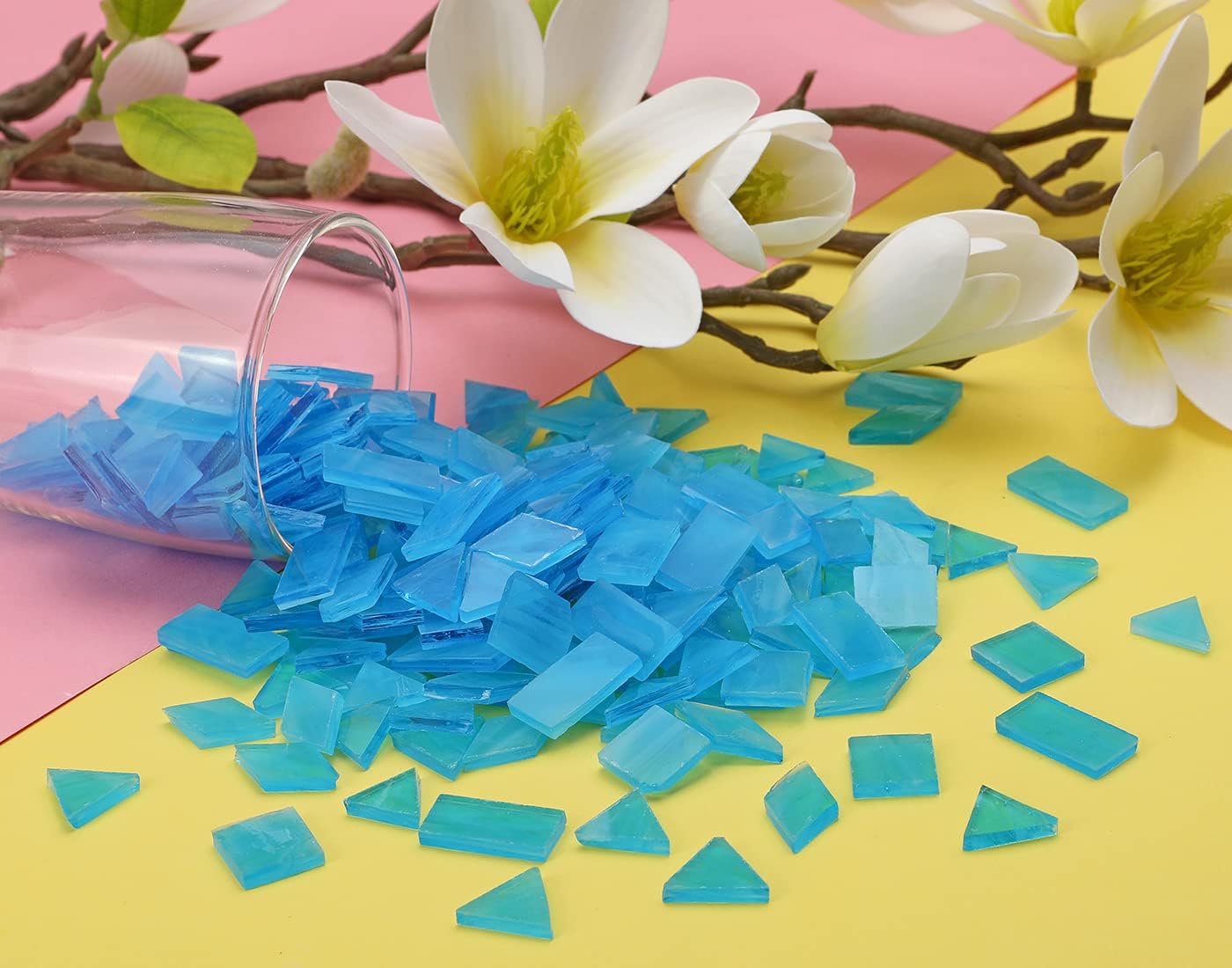 Lanyani 200 Pieces Glass Mosaic Tiles for Crafts,4 Shapes Mixed Colorful Tiffany Stained Glass Pieces,Square/Rectangle/Diamond/Triangle,Sky Blue