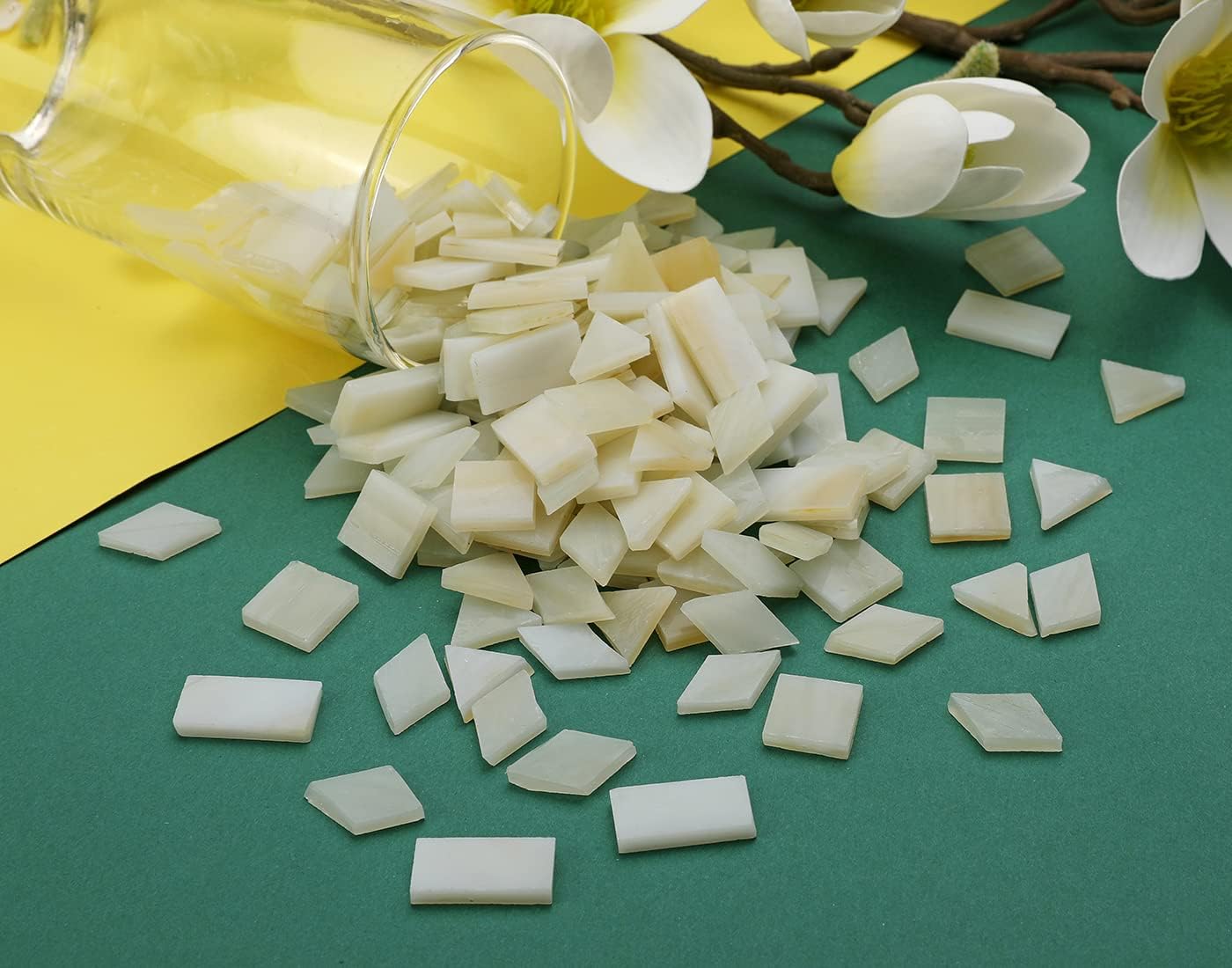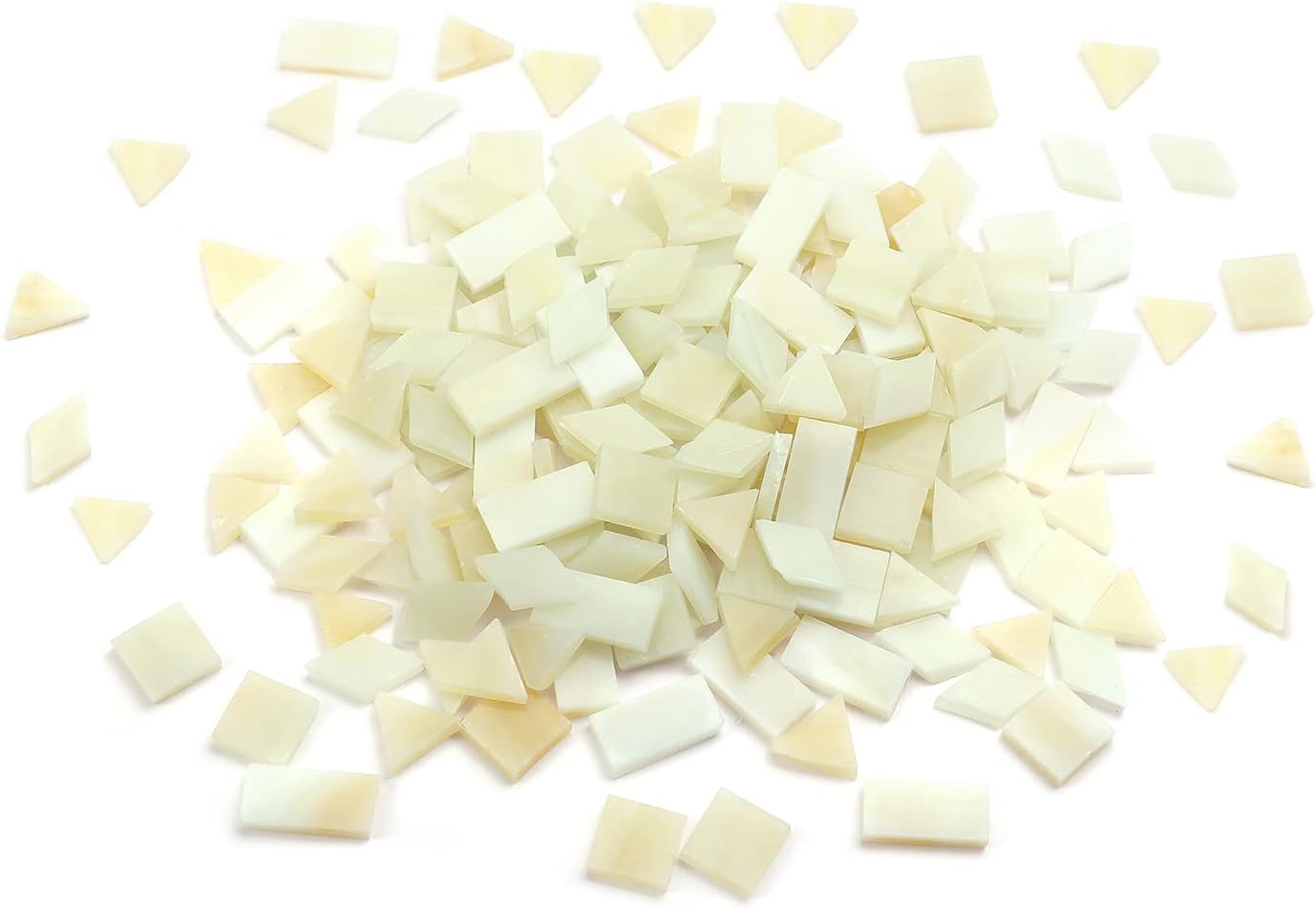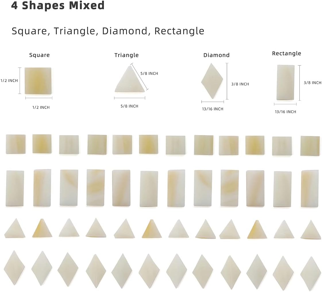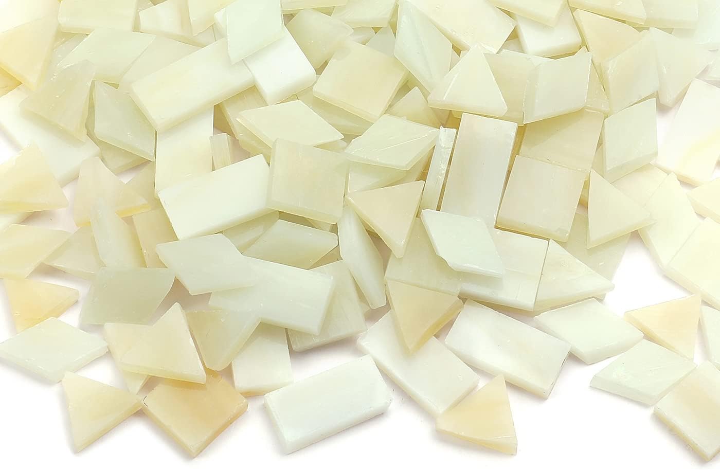 Multi-Color Options, Lanyani 200 Pieces Glass Mosaic Tiles for Crafts,4 Shapes Mixed Colorful Glass Tiles Tiffany Stained Glass Pieces for Mosaic,Cream