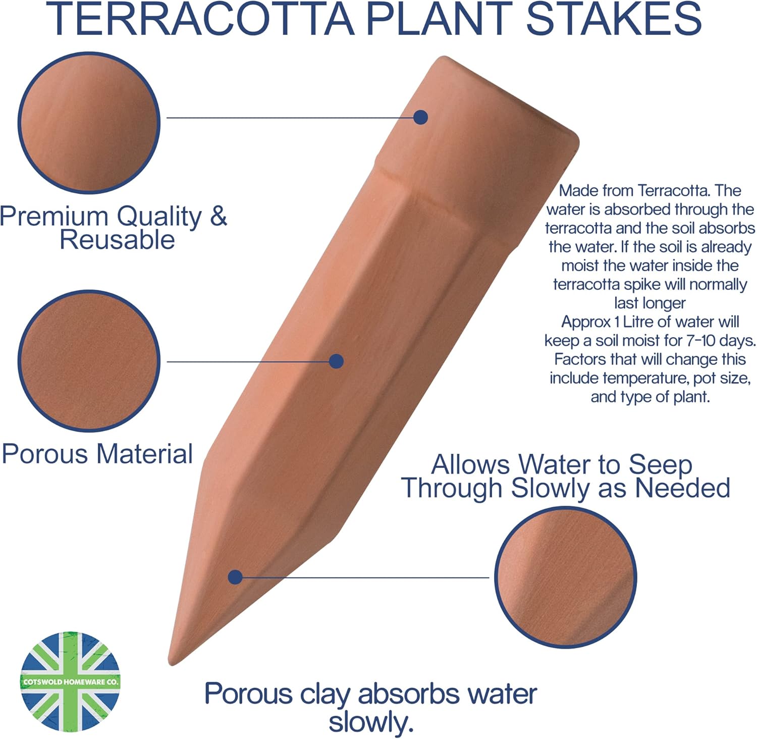 - "Ideal for Frequent Travelers:- Be vacation ready with our Slow Release Terracotta Watering Stakes , water release will depend on your soil and temperature. The terracottas spikes are designed to prevent over watering and to ensure the water is released over time while you are away. It is recommended to test the watering stakes before your next extended leave. No need to worry with watering plants while you are away with our terracotta self watering plant spikes."