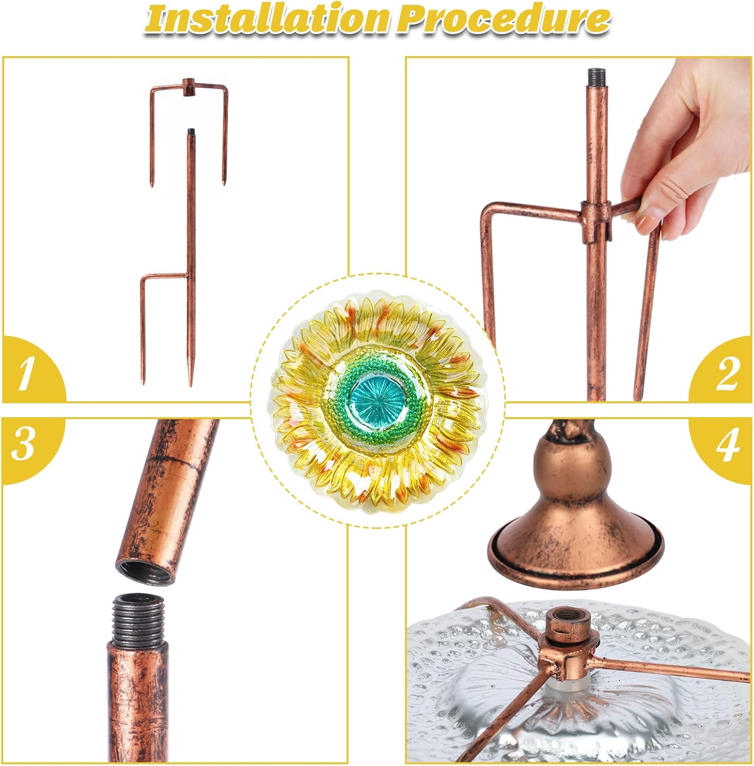 - {Sunflower Bird Bath} Uses special substantial nontoxic glass, causes zero harm to birds and other creatures, and this outdoor bird bath has delicate sunflower pattern and distinctively bright-coloured which would attract more birds to bathe