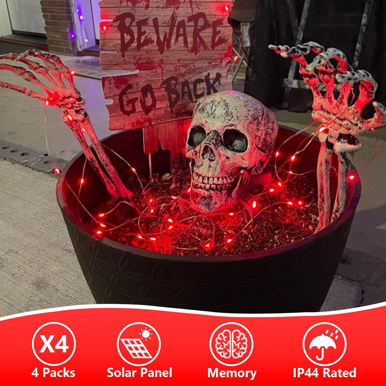 - What You Get: 4 Pack*100 LED red string lights, 4*stake, 4*stand, quick and friendly customer service.