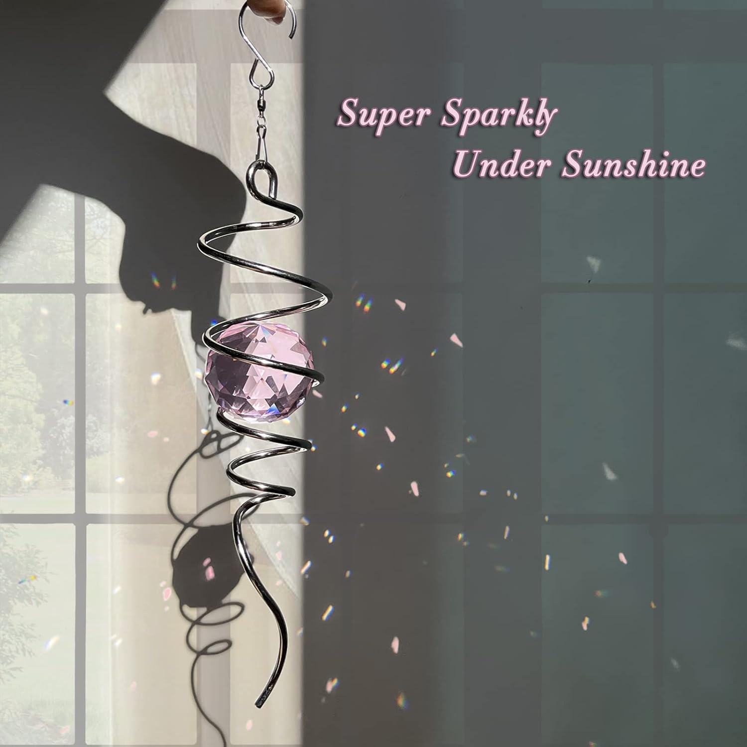 - 【PREMIUM CRYSTAL SUNCATCHER】The spiral with crystal is a special sun catcher rainbow maker, it’s Super Sparkly under sunshine. You can also add a motor(not include) to let the spiral to spin ,while spiral tail rotating (it can’t spin by itself.), the crystal ball seems to move up and down like floating and dancing in air while spiral tail rotating, presents the magical visual illusion.