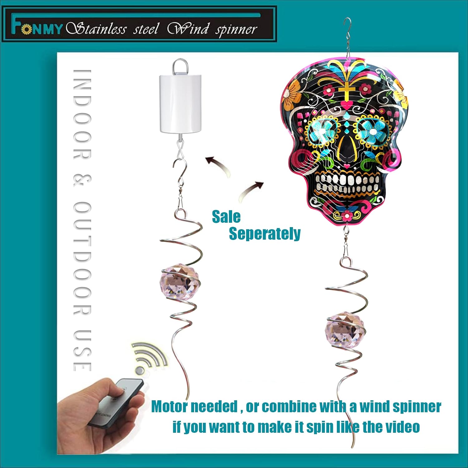 - 【WIDELY USE】: A sparkly ornament for indoor or outdoor use or windows.Unique Handmade; Beautiful and sparkling.Hanging decoration for Home Office Garden Window. Help to stabilize 3D wind spinners décor from wiggling on real windy environment. Can hang up in living room ,yard,balconyn,kitchen,or anywhere you desire to hang,also can along with a 3D wind spinners attach to a rotating motor(motor not include) to twirl freely