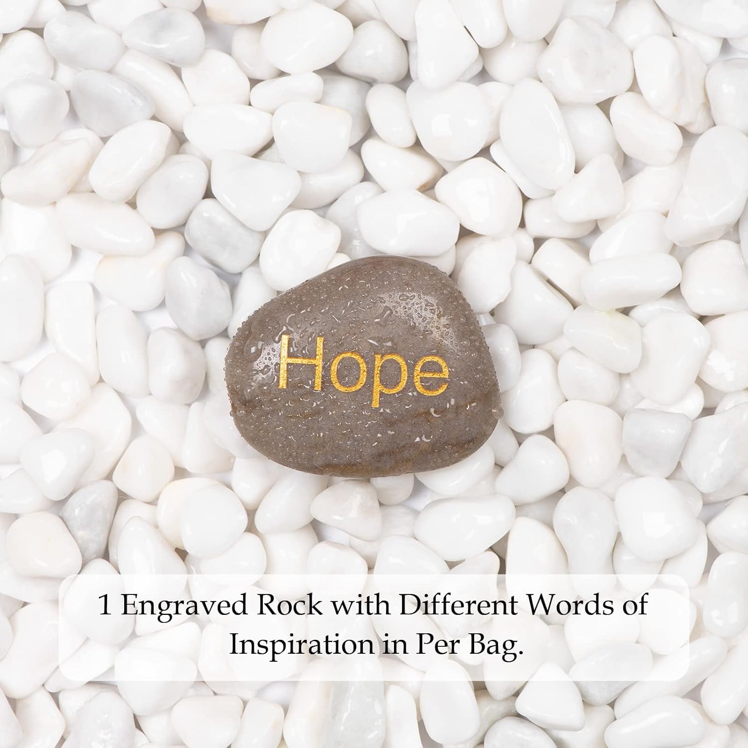 - 【Engraved rock included】 There is one engraved rock with different words of inspiration in per bag. Ausluru polished pebbles are engraved with Different Words of Encouragement. Inspiration stones are engraved with care so it will last many years.