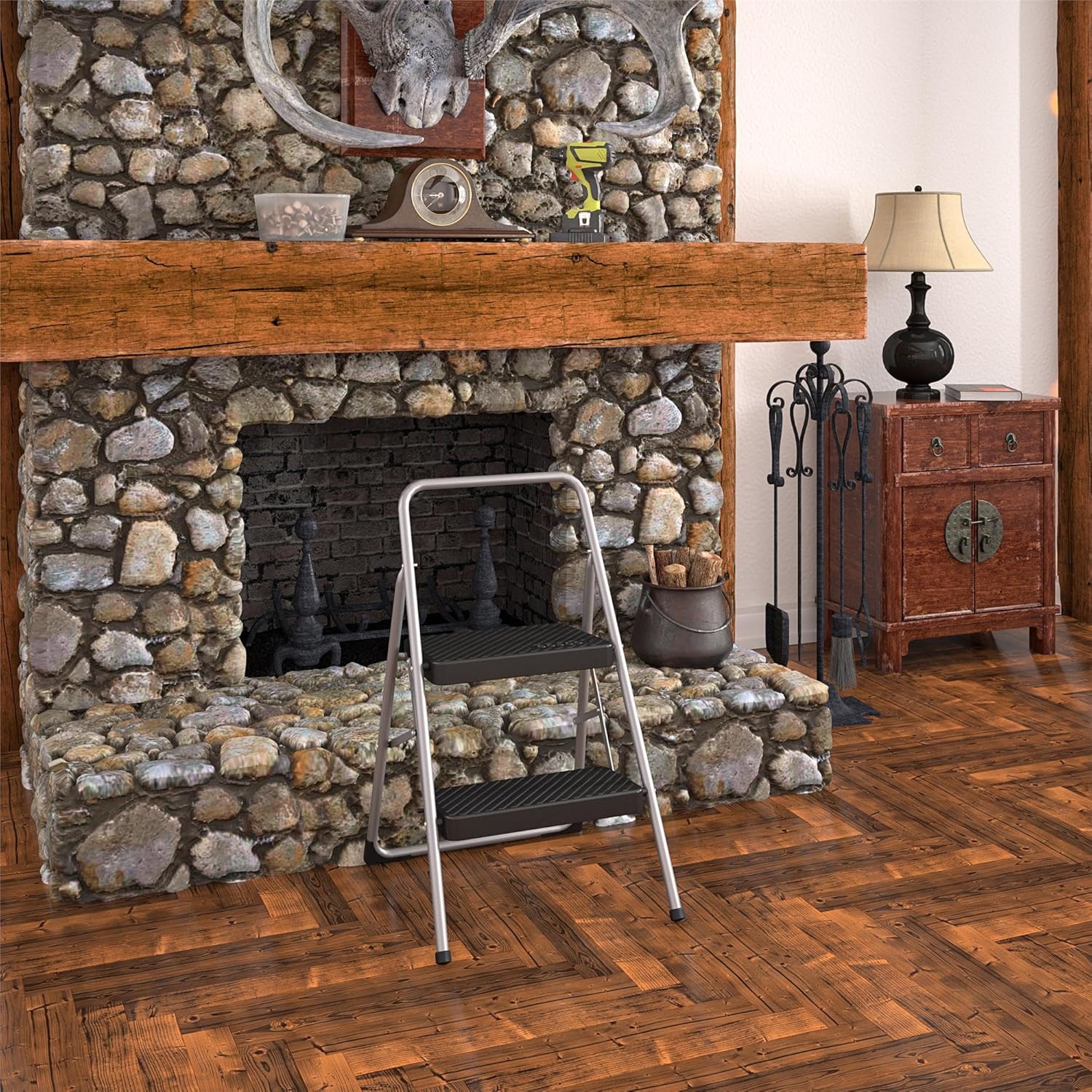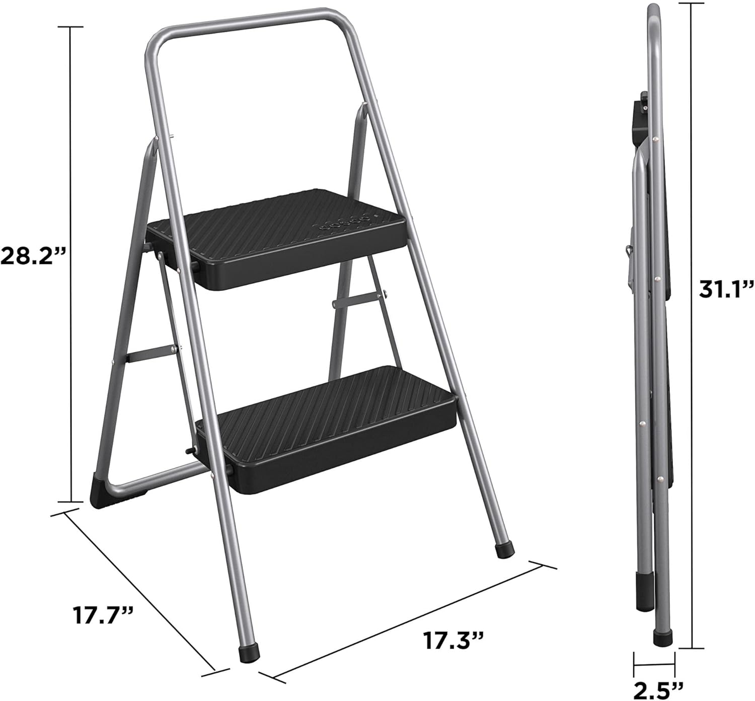 CoscoProducts COSCO 11137PBL1E 2 Household Folding Step Stool, ANSI Type 3, 200 lb Weight Capacity, Platinum