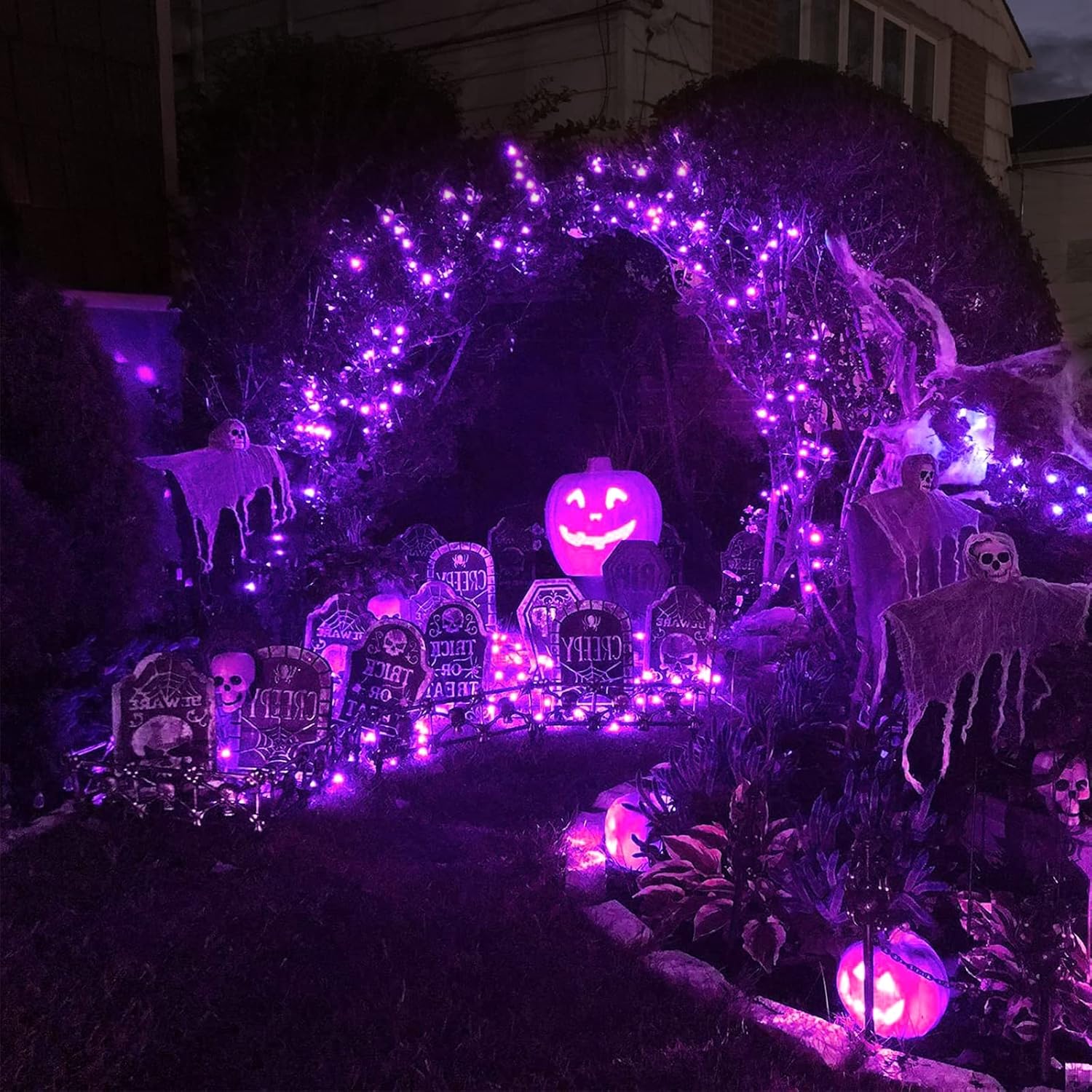 - 【Efficient Solar Charging & Smart On/Off】Our outdoor Halloween purple lights are solar powered and have a high efficient solar panels, it can convert 8-12 hours of solar energy into 8 hours of electricity, saving electricity bills. Turn on the "on" button, the light will automatically turn off during the day, in a charging state; and automatically turn on at night.