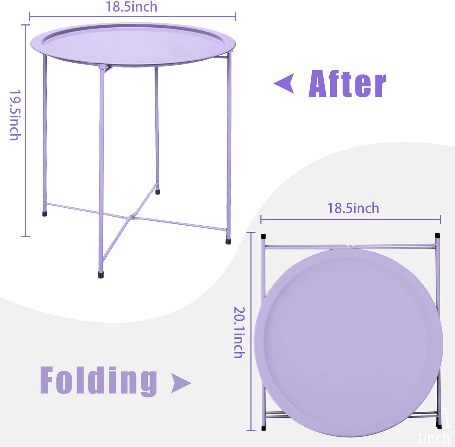 Garden 4 you End Table Metal Side Table Purple Round Folding Tray Cyan Sofa Small Accent Fold-able Table, Round End Table Tray, Next to Sofa Table, Snack Table for Living Room and Bed Room