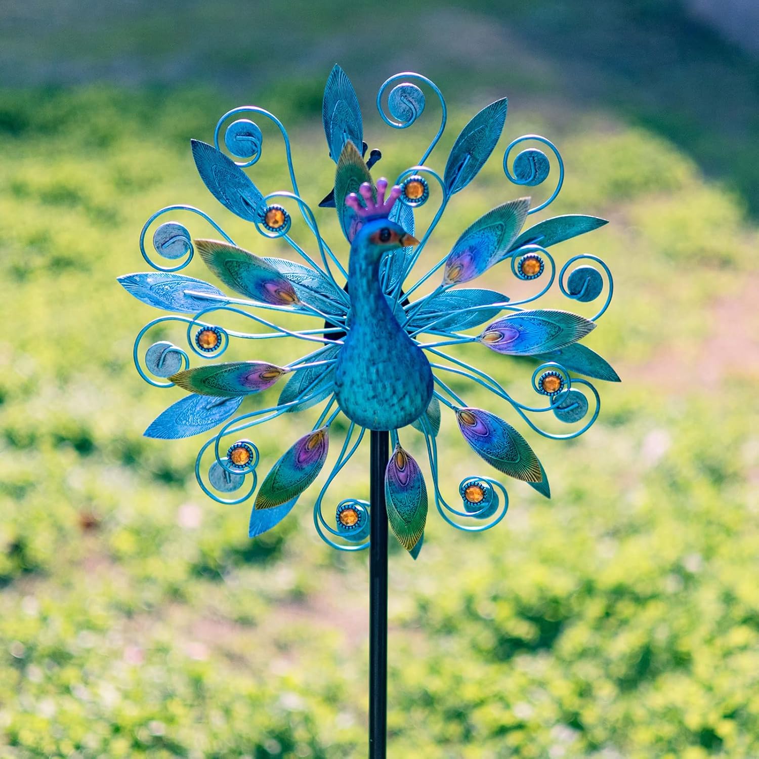 - Peacock Design:Design with vivid peacock, when there is a breeze, it can drive the tail to rotate, adding color to your garden, terrace or lawn and relax your mood