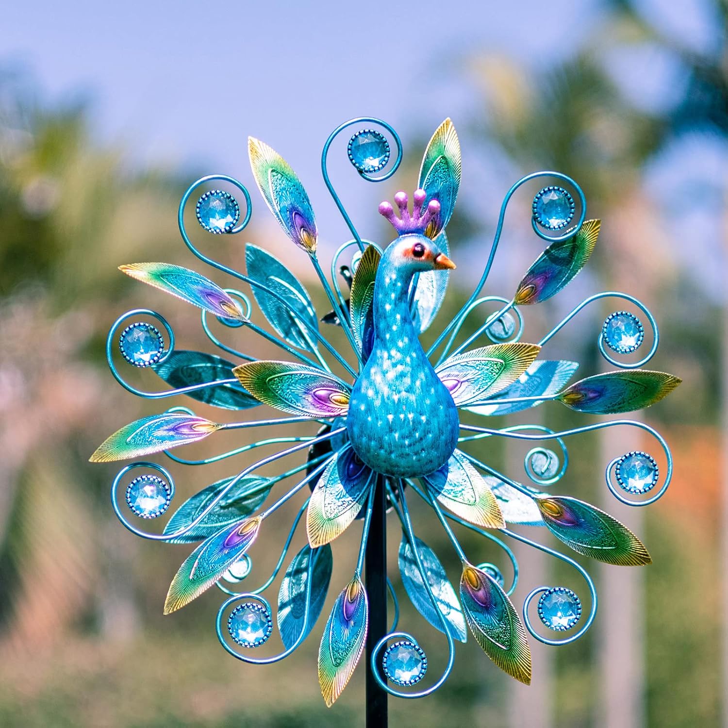 - Dual Rotating Blades:Peacock wind spinners having a solid metallic construction with dual direction wind motion,two tiers blades smoothly rotate in opposite directions on sealed bearings.Superb welding technology provides wind spinner with smoothly rotating
