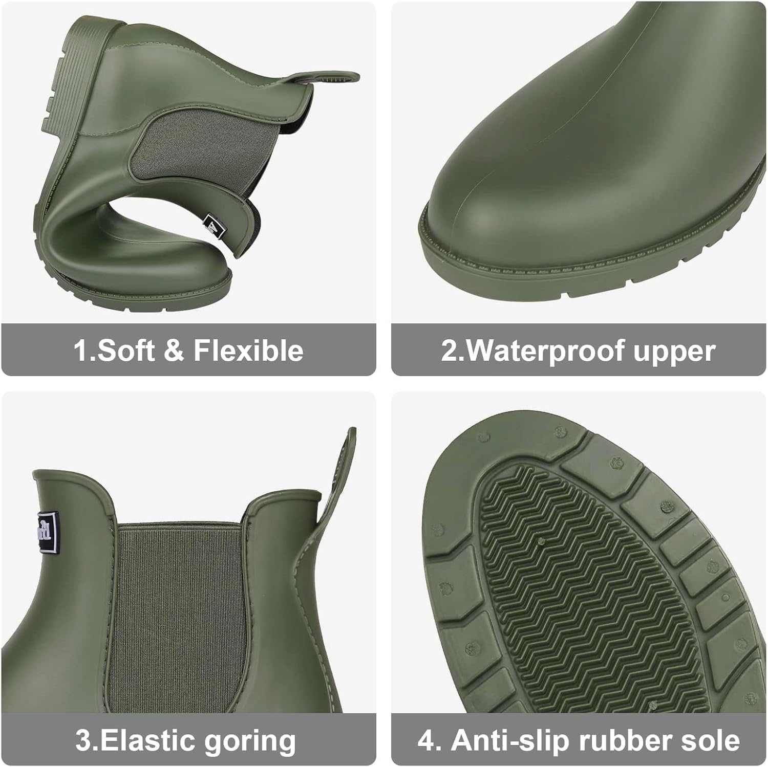 • STYGLISH STYLE: The classic chelsea rainboots with perfect matte finish are lightweight and comfy, you can wear these short rain footwear no matter the weather.