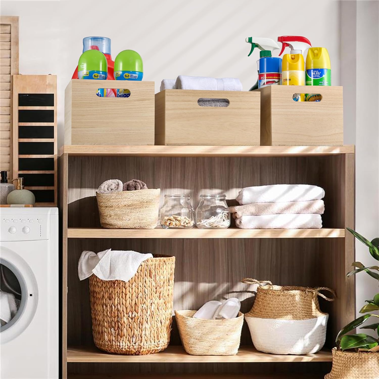 - WOODEN STORAGE BINS (4-PACK) — Provides modern storage for household essentials with a natural look — Pairs nicely with similar styles in the Sorbus Wood Bin Collection (sold separately)
