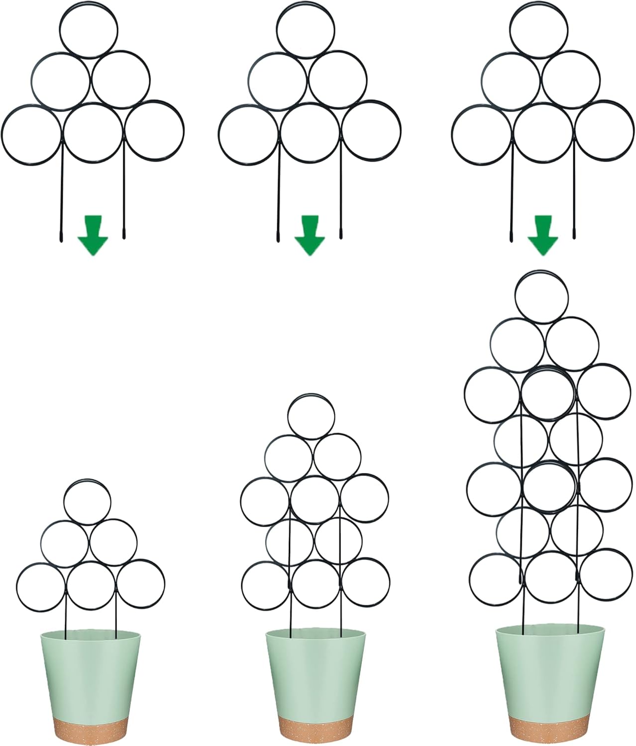 - Easy To Assemble And Use: No tools required, just pierce the bottom of the small garden trellis deeply into the soil and plant will grow up on it. You can stack 2 or 3 layers with cable ties to increase the growth length of plant vines