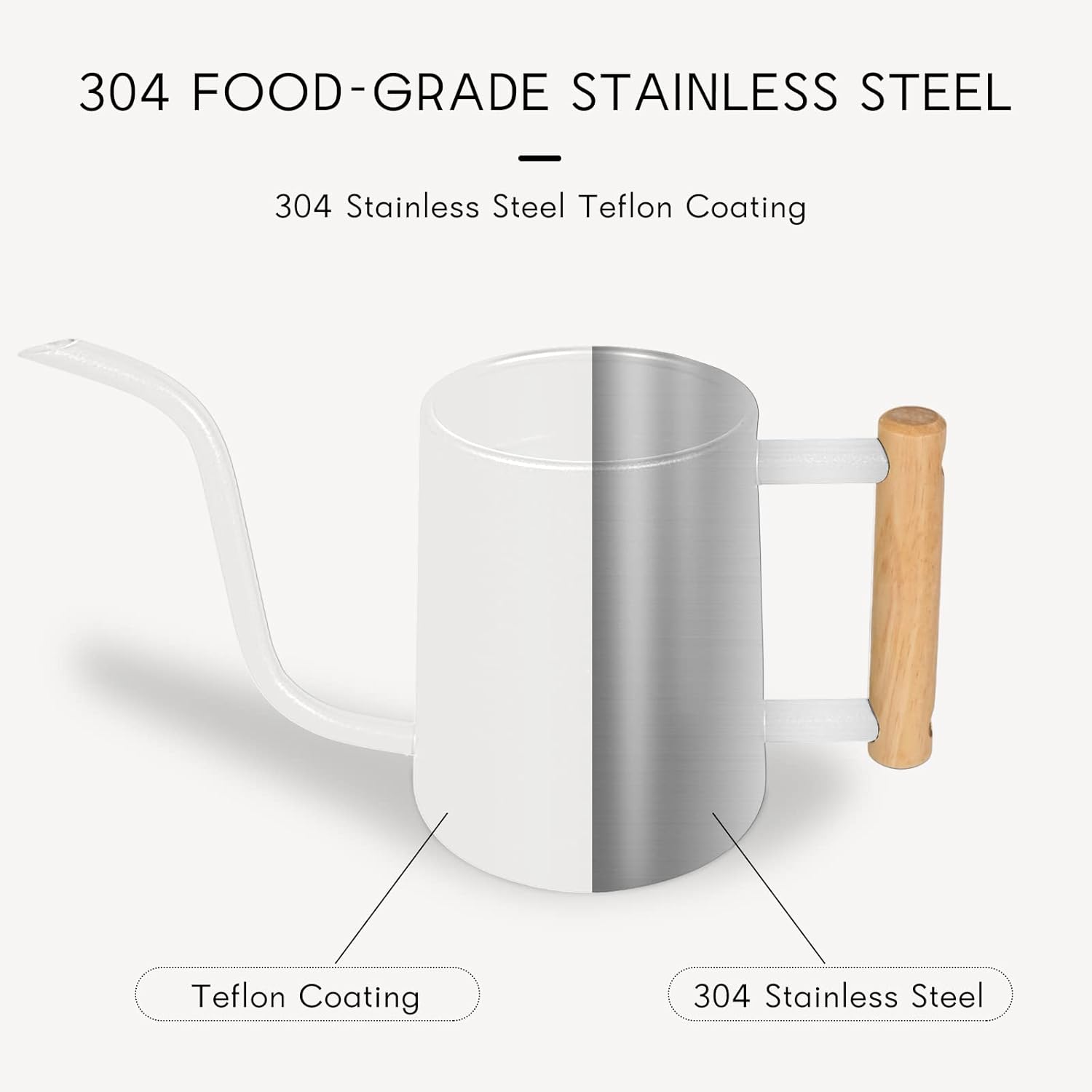 - [COMFORTABLE WOODEN HANDLE] The indoor watering can has a round comfortable wooden handle that is easy to grasp and won't cut your hands.This stainless steel watering can open built-in open top design, it is convenient to refill water