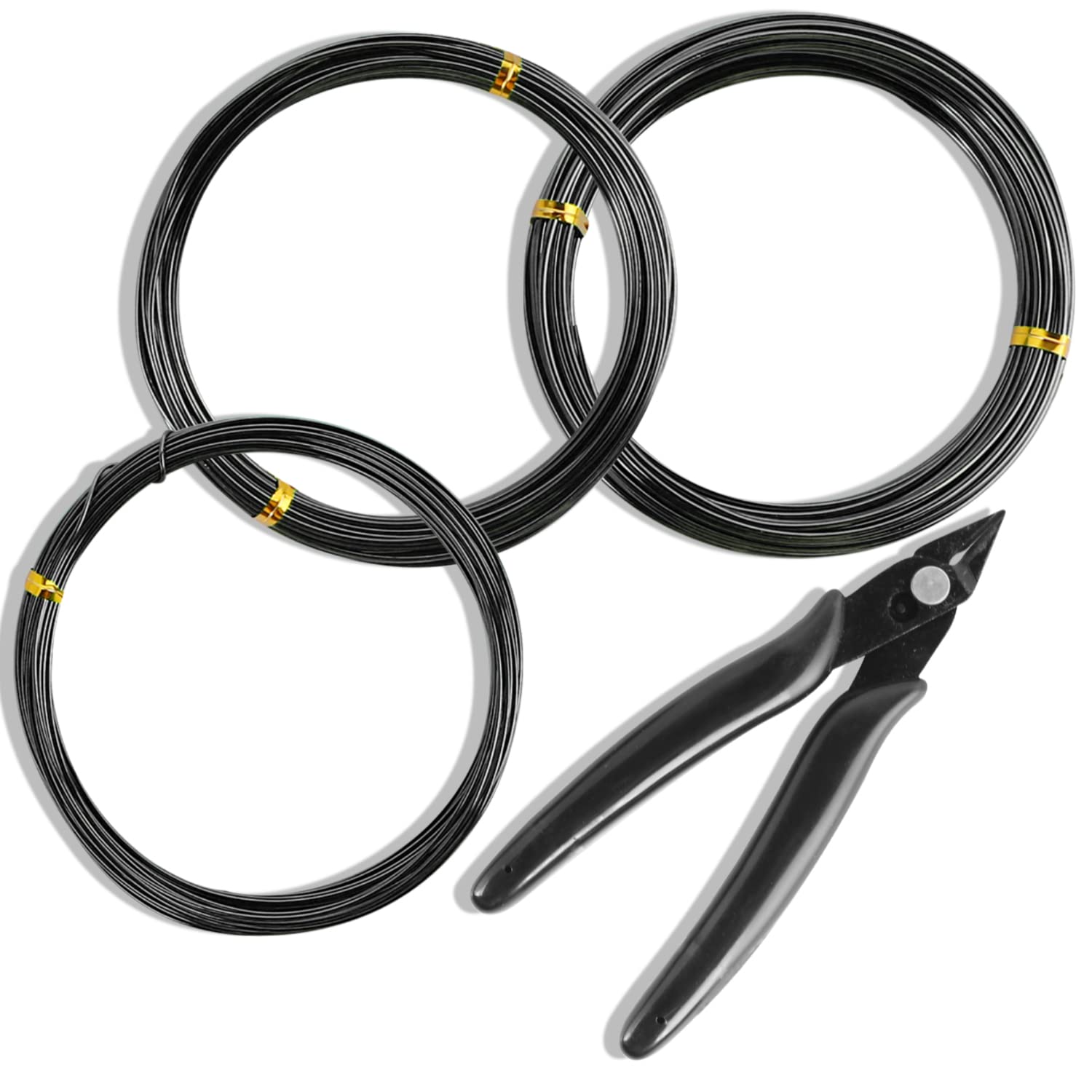 Sanlykate Bonsai Wire Tool Kit with Cutter, 3 Roll Tree Training Wires 98 Feet Total, 1.0mm, 1.5mm, 2.0mm Anodized Aluminum Wire Set, Hold Plant Branches Trunks - Black