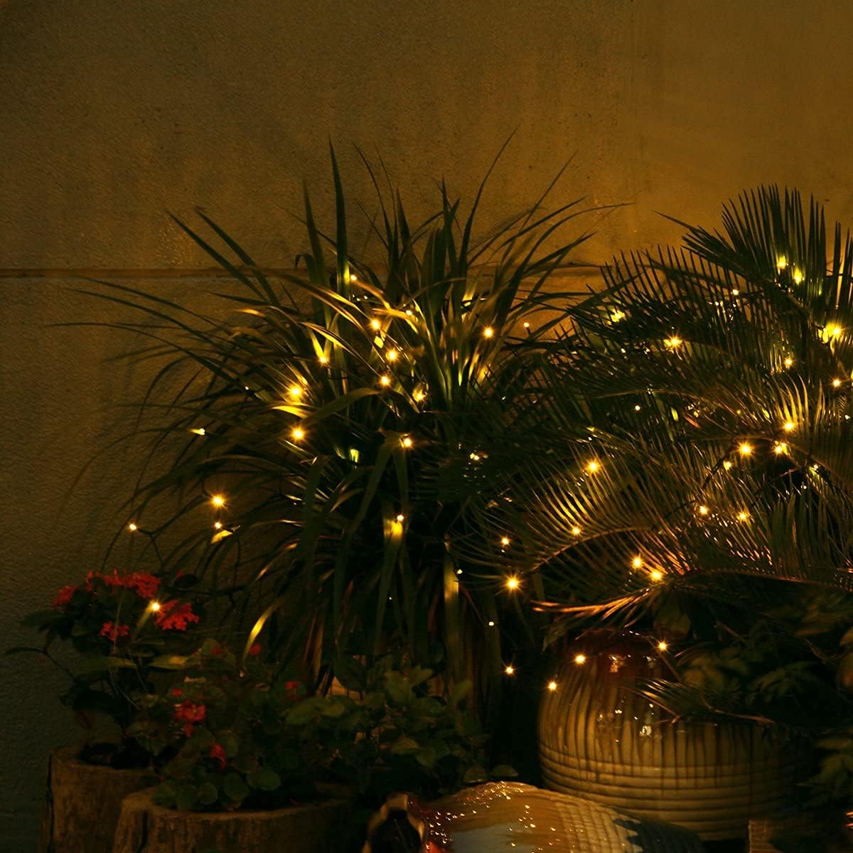 - High Efficiency Solar Lights: This outdoor string lights can work up to 10 hours or more after being fully charged, the LED beads are bright and low energy consumption, it will light up at night like blinking stars, creating warm and romantic ambience for your home, garden.
