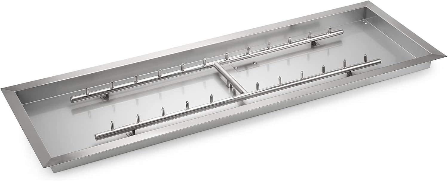- Easy Installation: All you have to do is to drop this burner pan into your fire pit, hook up to a gas source, add some fire glass and you’re done (gas hoses and connection kit are not included).