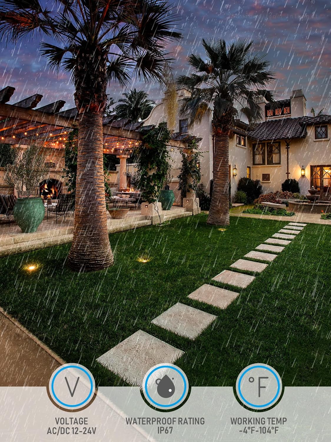 - 12-24V AC/DC: Lawnmower Can Cut Directly. Safe low voltage, more widely matching and safe for surrounding children or pets. UL-listed wires, easy to connect, no worrying about fire hazard landscape light comes with an embedded part and two waterproof wiring caps