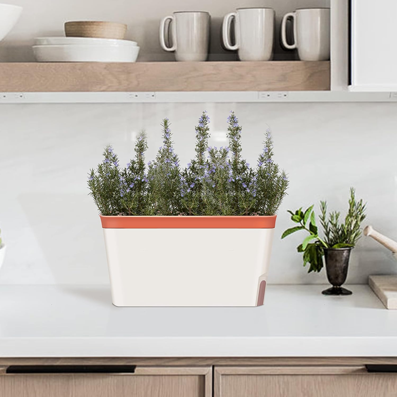 GardenBasix Self Watering Planter Pots Window Box for Indoor Plants Home Garden Modern Decorative Flower Pot for All House Herbs Succulents Set of 6 (6, Clay(Rectangle))