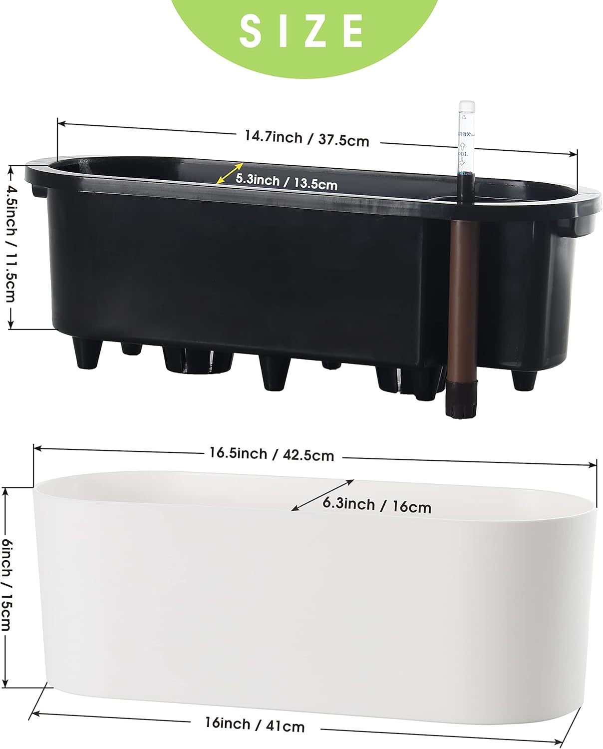 SAROSORA 16" Oval Self Watering Planter with Water Level Indicators for Plants & Flower Home Garden Outdoor Indoor Succulent | Herb pots | Window Box (1, Oval, White)