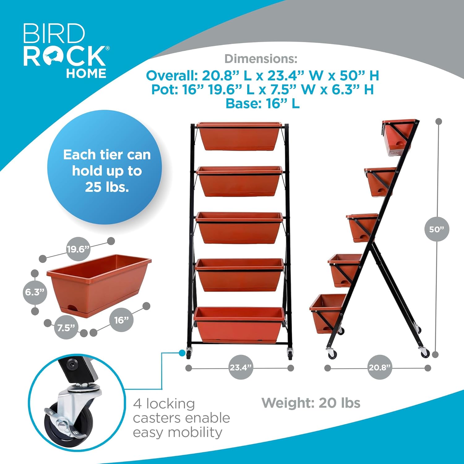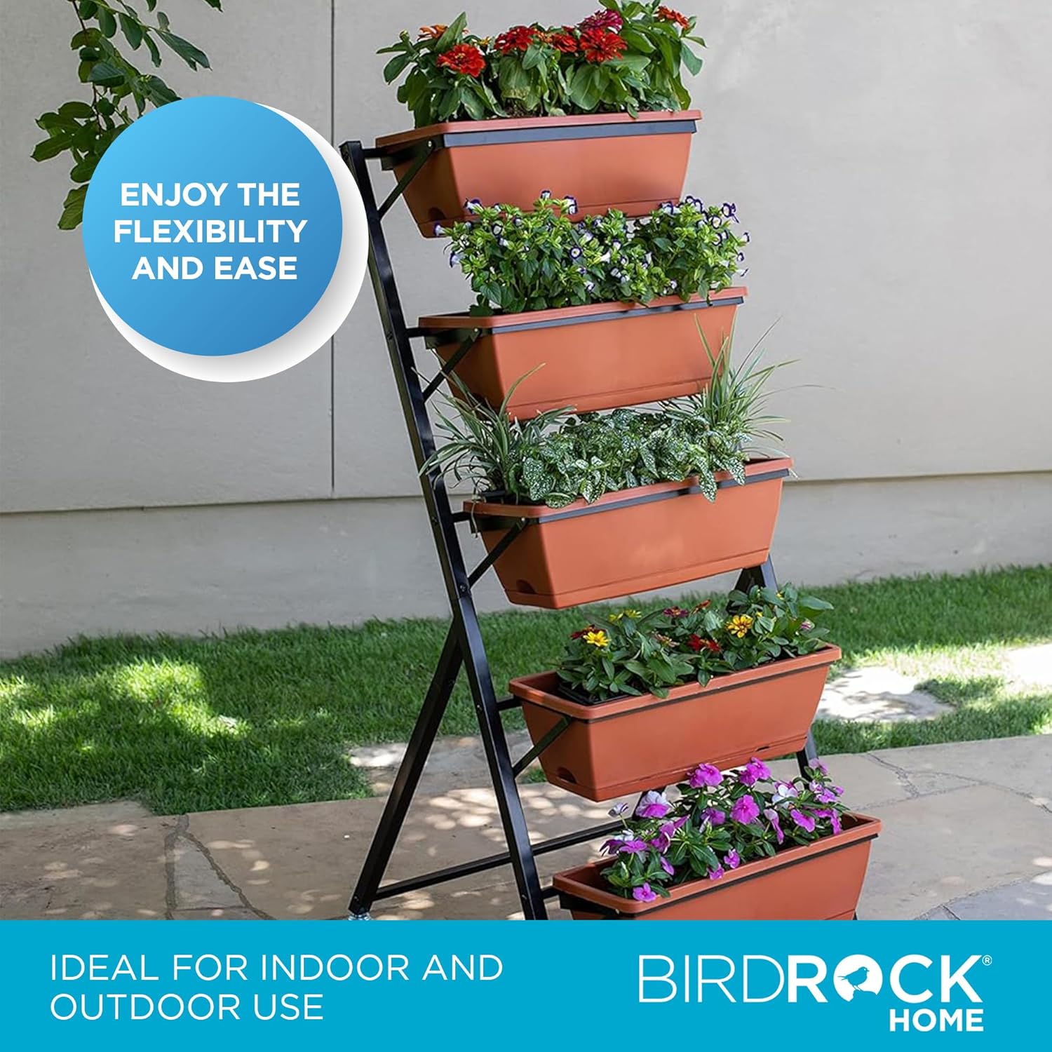 BIRDROCK HOME 5-Tier Vertical Garden Planter Bed - Raised Flower Stand - Rolling Plant Tower - Weather Resistant Box - Indoor or Outdoor - Herbs Flowers Berry’s Vegetables - Metal