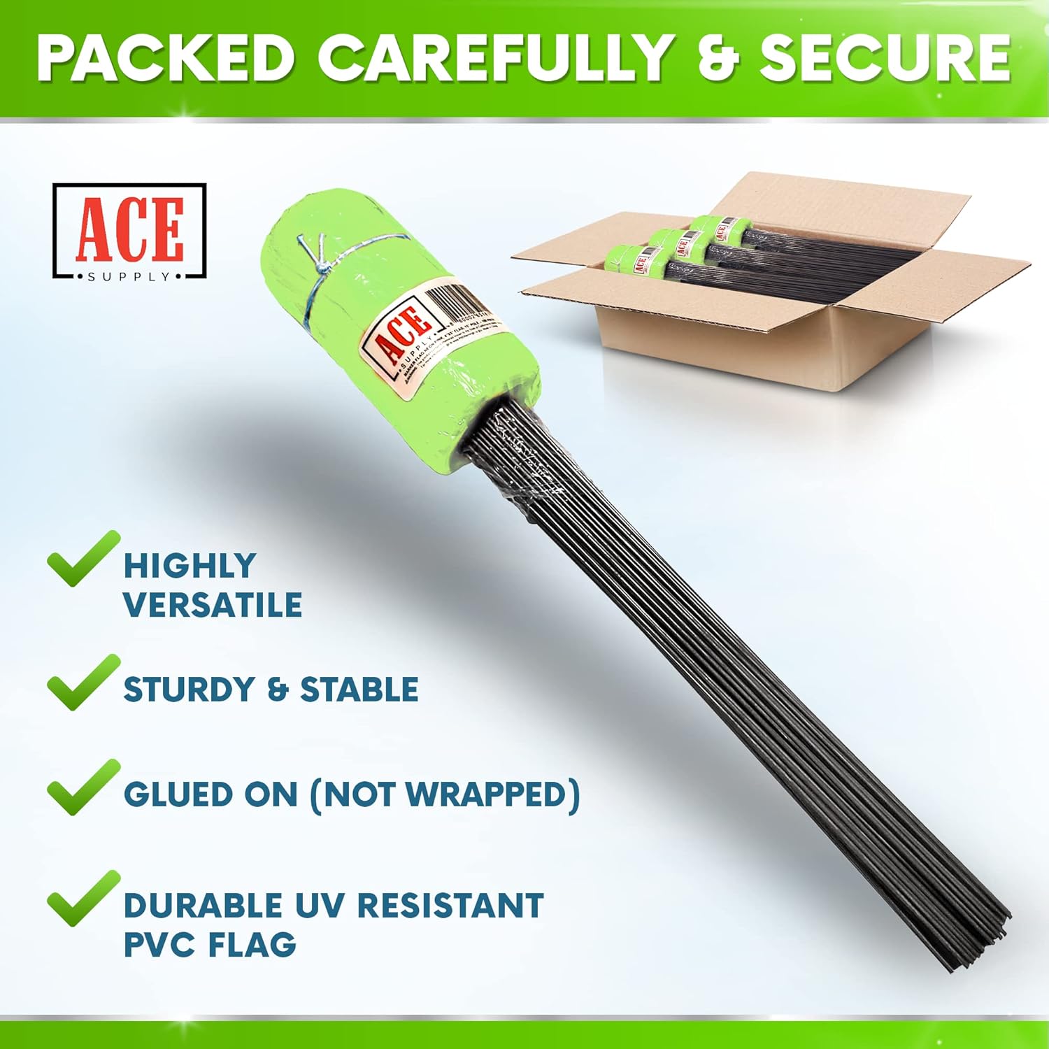 - STURDY & STABLE - Rest easy using these flag markers for yard projects. Our yard marker flags are glued on, making them reliable in high winds. The staff is made of steel for ultimate durability.