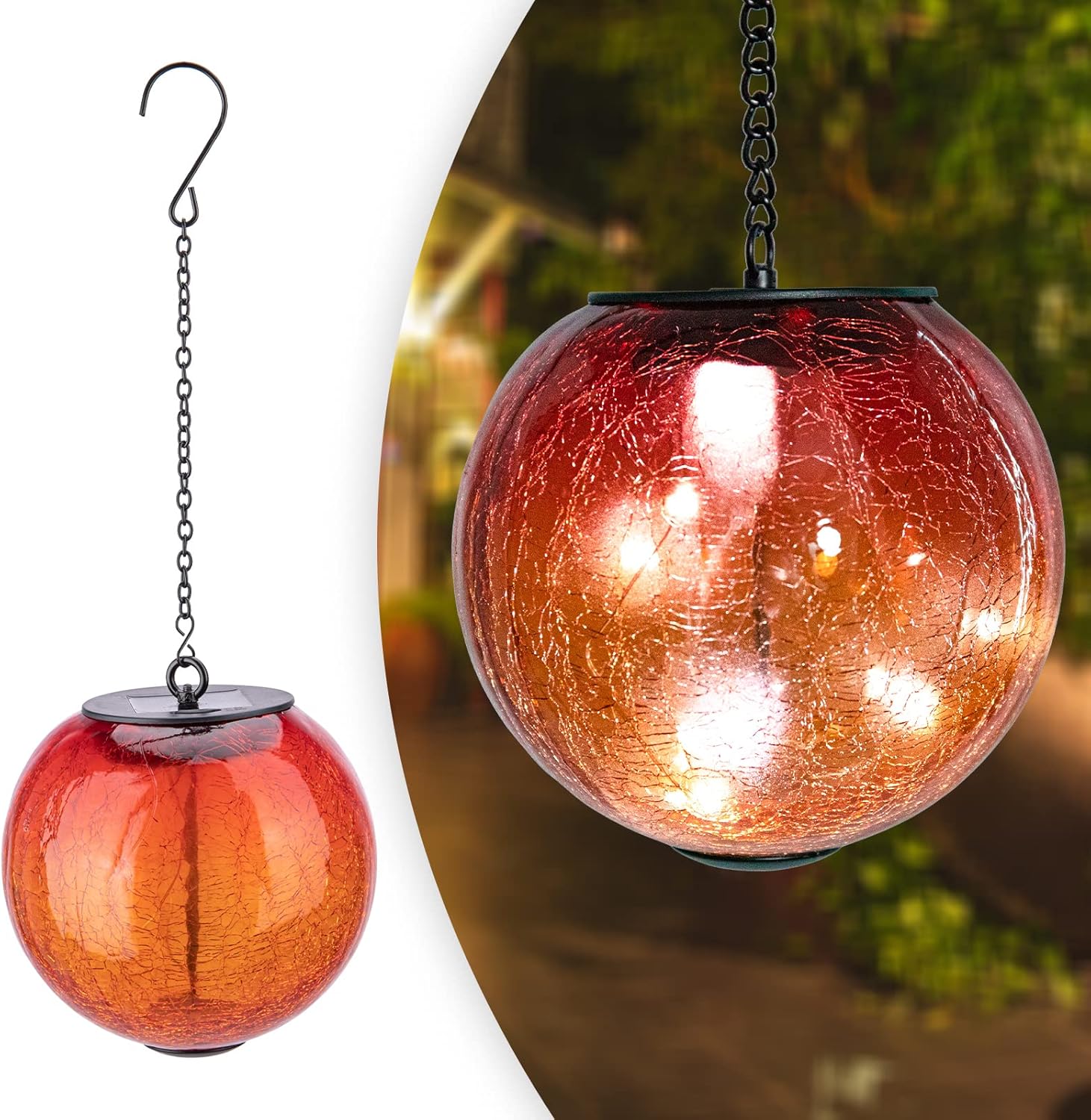 Hanging Solar Lights Outdoor Solar Lanterns Outdoor Decorative Cracked Glass Ball Lights Solar Powered Waterproof LED Globe Lantern for Outdoor Porch Patio Garden Decor Gift Orange