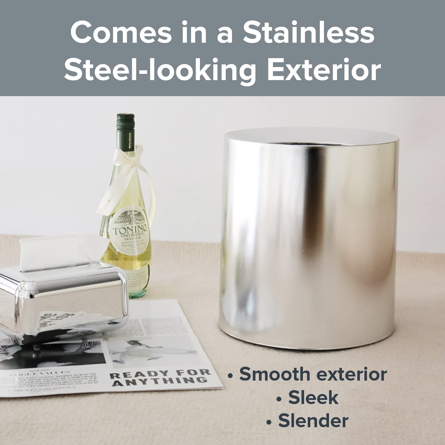 - Reliable Trash Cans for Cleaner Homes: Trashaholic products are designed to make house keeping a lot easier. So we make sure that all our garbage cans are durable, reliable & convenient. If there's anything you wish to tell us about your experience with our Thick-Rimmed Garbage Can with a stainless steel look, please do reach out to us. Our spill-proof stainless steel plastic trash can is made for your satisfaction