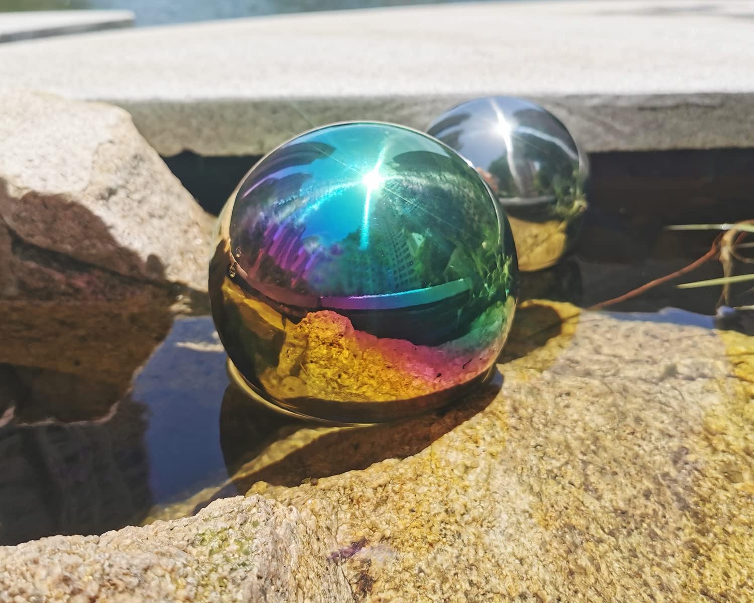 - Material:The globe is made from stainless steel, durable and smooth, high brightness shiny sphere.Beautiful brilliant mirror finish catches the light and reflects the surroundings wonderfully