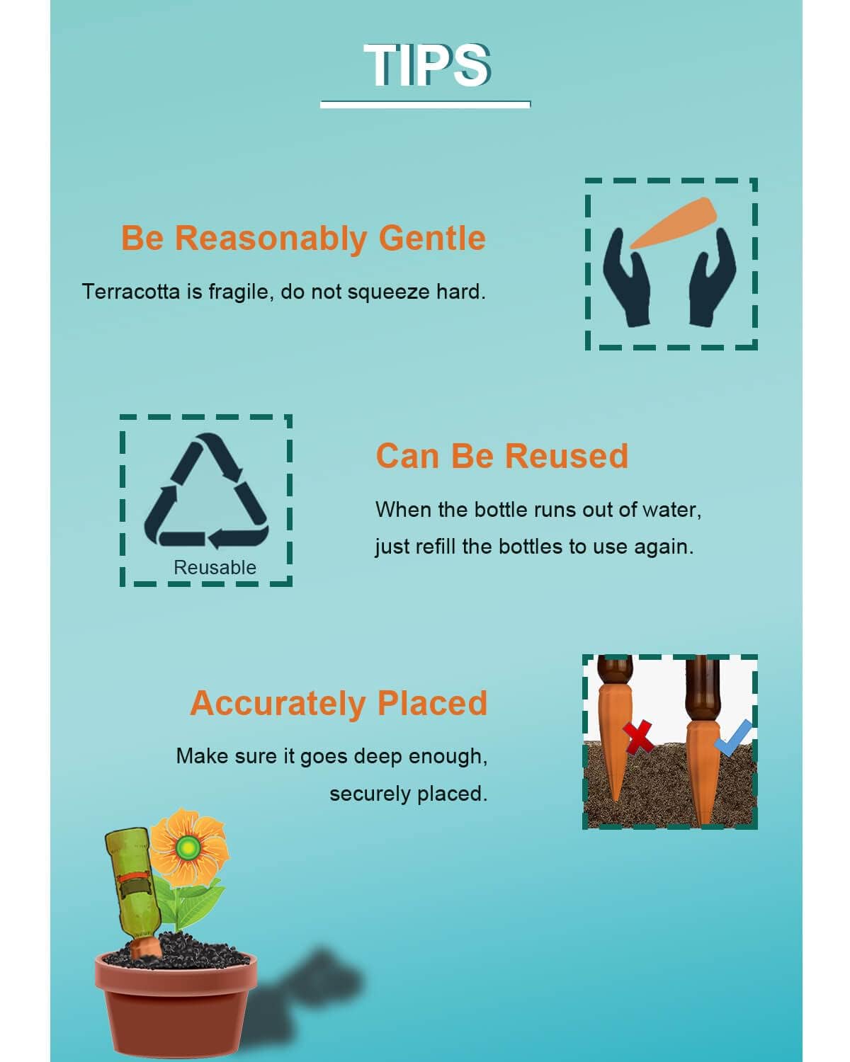 - [ REDUCE WATERING FREQUENCY ]: Clay watering spikes are perfect for daily use. Once the watering device is in place, it automatically supplies water to your plants, reducing watering frequency, freeing your hands and saving you time.