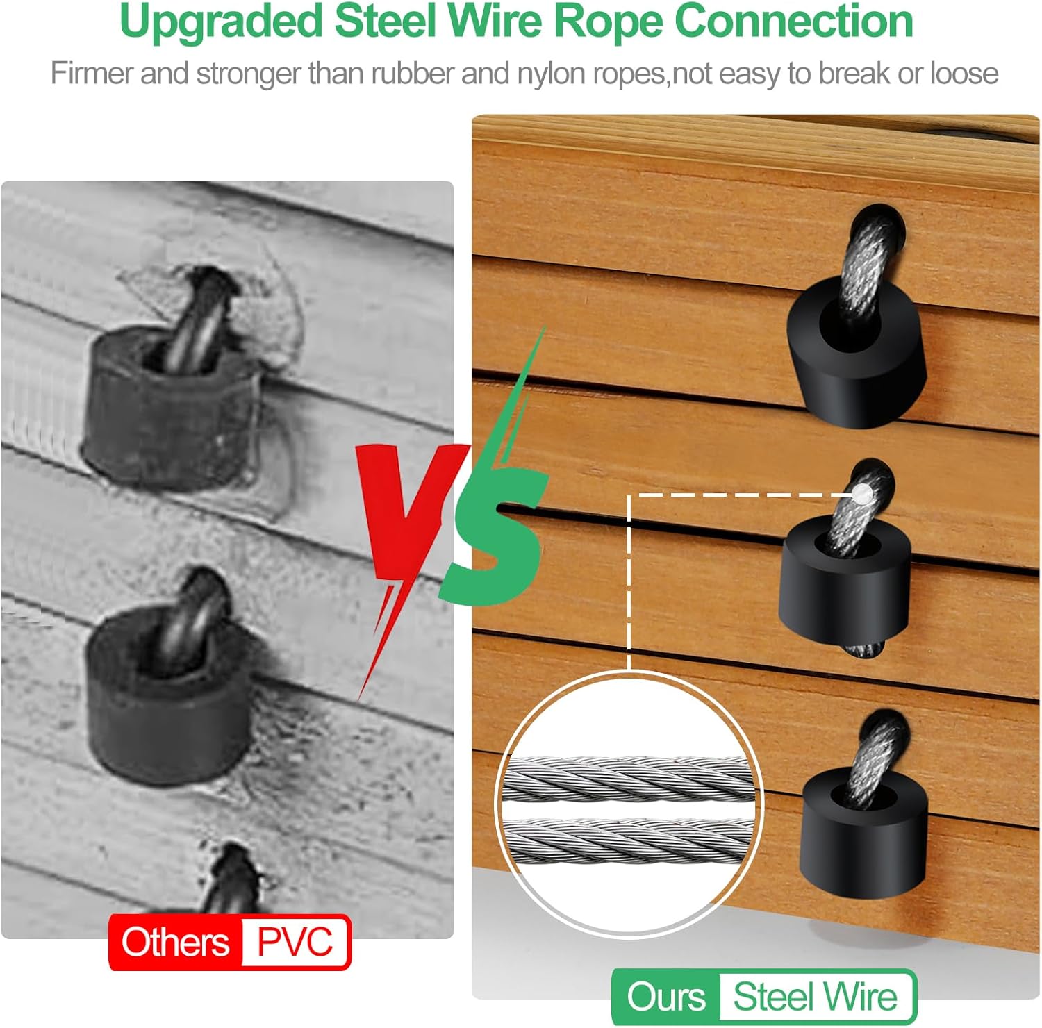 - Firm Steel Wire Rope Connection:Each plank is firmly connected with 2 rows of steel wire ropes and rubber spacers,which are more aging-resistant and anti-loosening than rubber and nylon ropes,while providing better protection to the wood surface!What’s more,this kind of connection gives the garden wooden pathway sufficient flexibility and durability to adapt to all kinds of uneven ground,like beach,grassy road,sandy road,icy road,snowy road,gravelly road,damp or muddy ground,boggy or bare areas