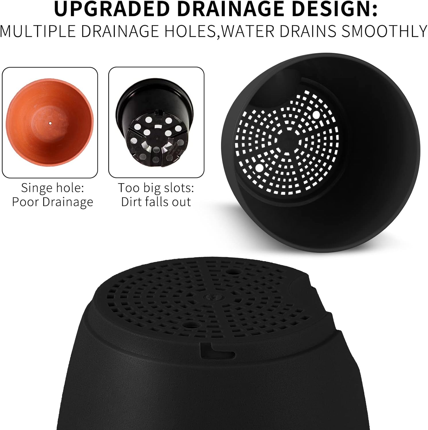GARDIFE Plant Pots 7/6.5/6/5.5/5 Inch Self Watering Planters with Drainage Hole, Plastic Flower Pots, Nursery Planting Pot for All House Plants, Succulents,Snake Plant, African Violet, Flowers,Black