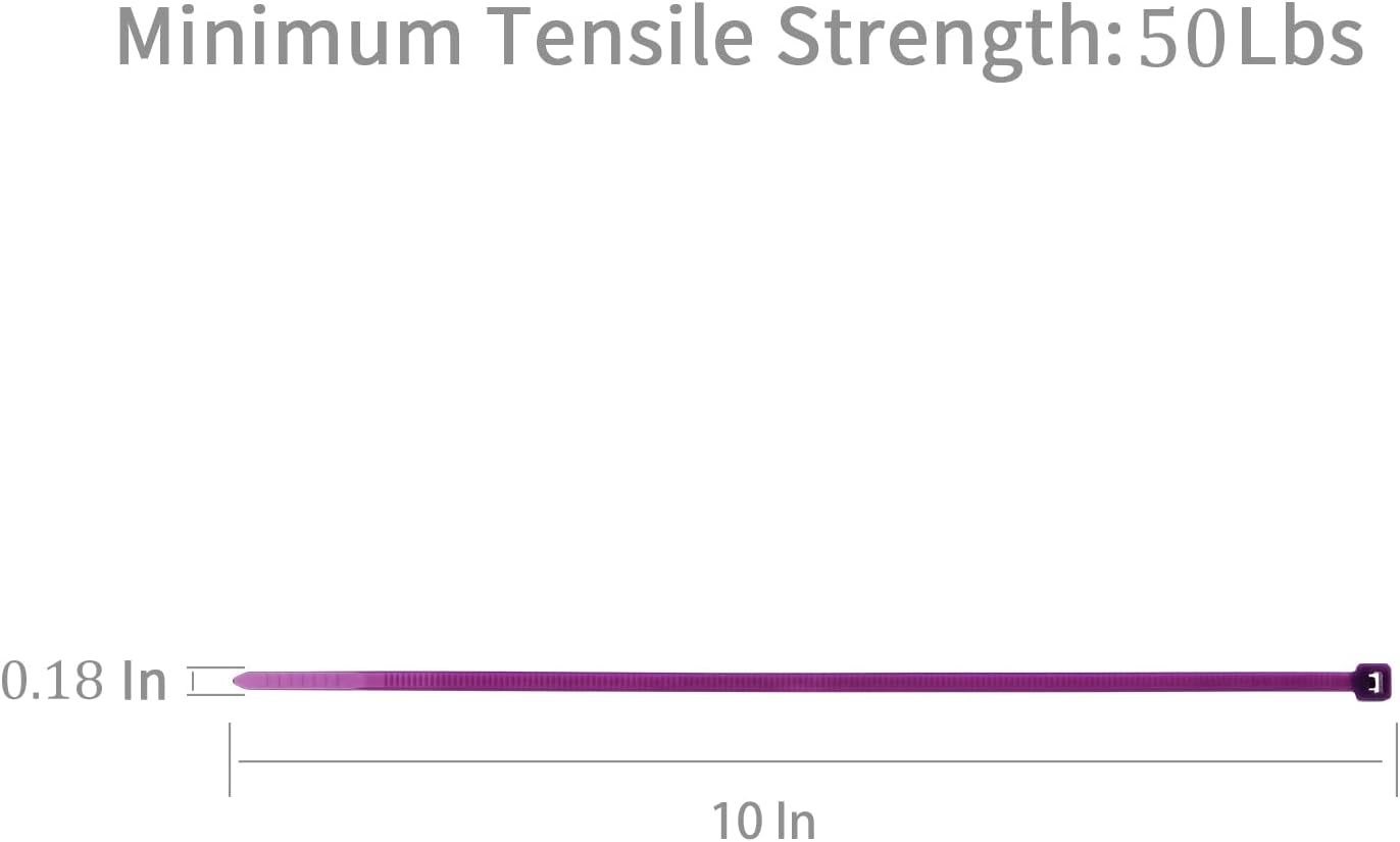 XINGO 100PCS Cable Zip Ties Heavy Duty, Premium Nylon Plastic Wire Ties with 50 Pounds Tensile Strength, Self-Locking Black Nylon Zip Ties for Indoor and Outdoor (10 inch, Purple)
