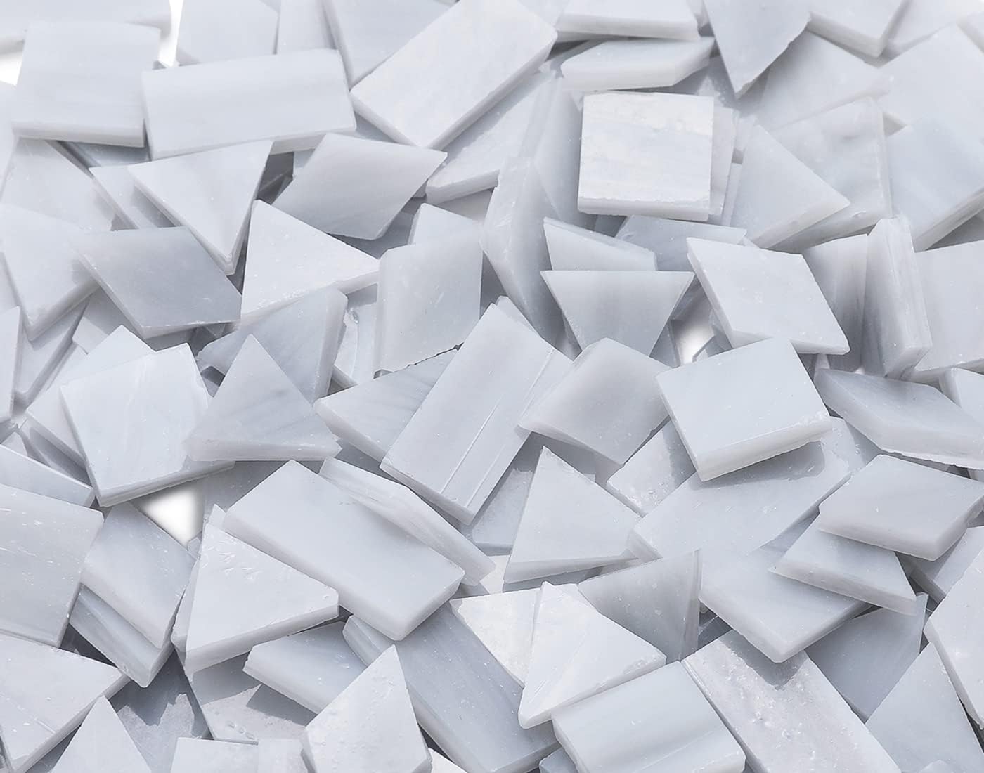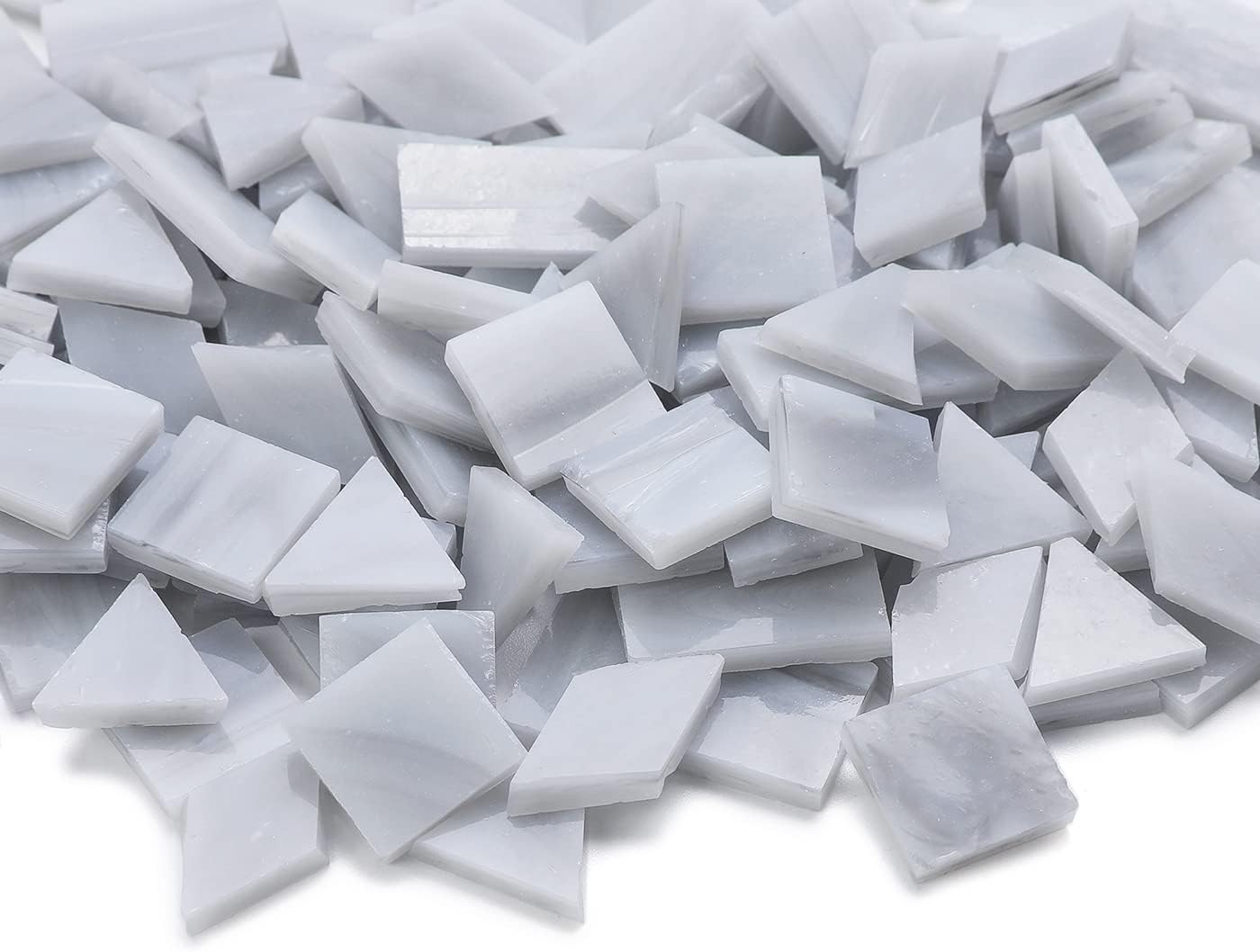 Lanyani 200 Pieces Glass Mosaic Tiles, 4-Shapes Mixed Stained Glass Pieces Tile for Crafts,Light Grey