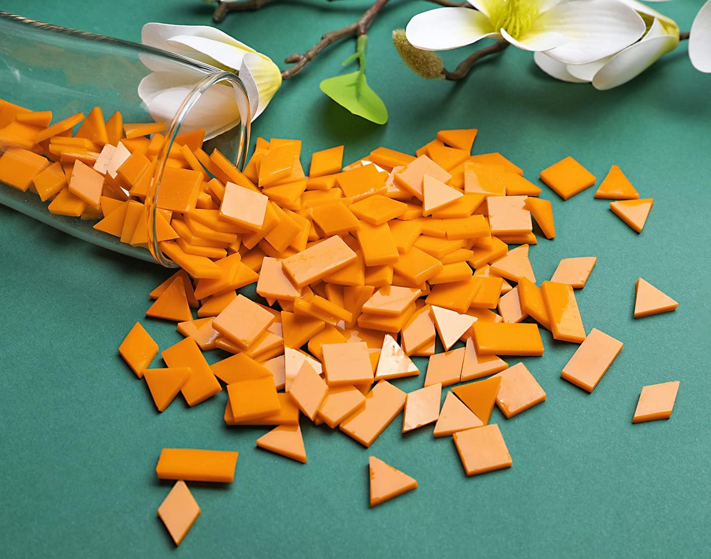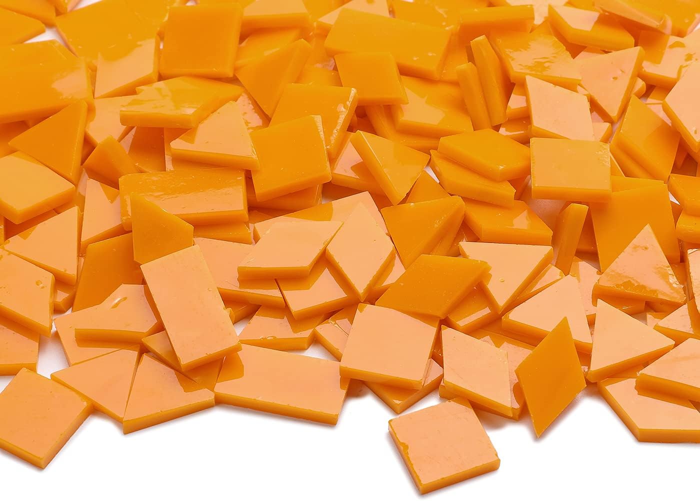 Lanyani Glass Mosaic Tiles for Art Crafts, 4 Shapes Mixed Tiffany Stained Glass Pieces, 200 Pieces, Square/Rectangle/Diamond/Triangle,Orange