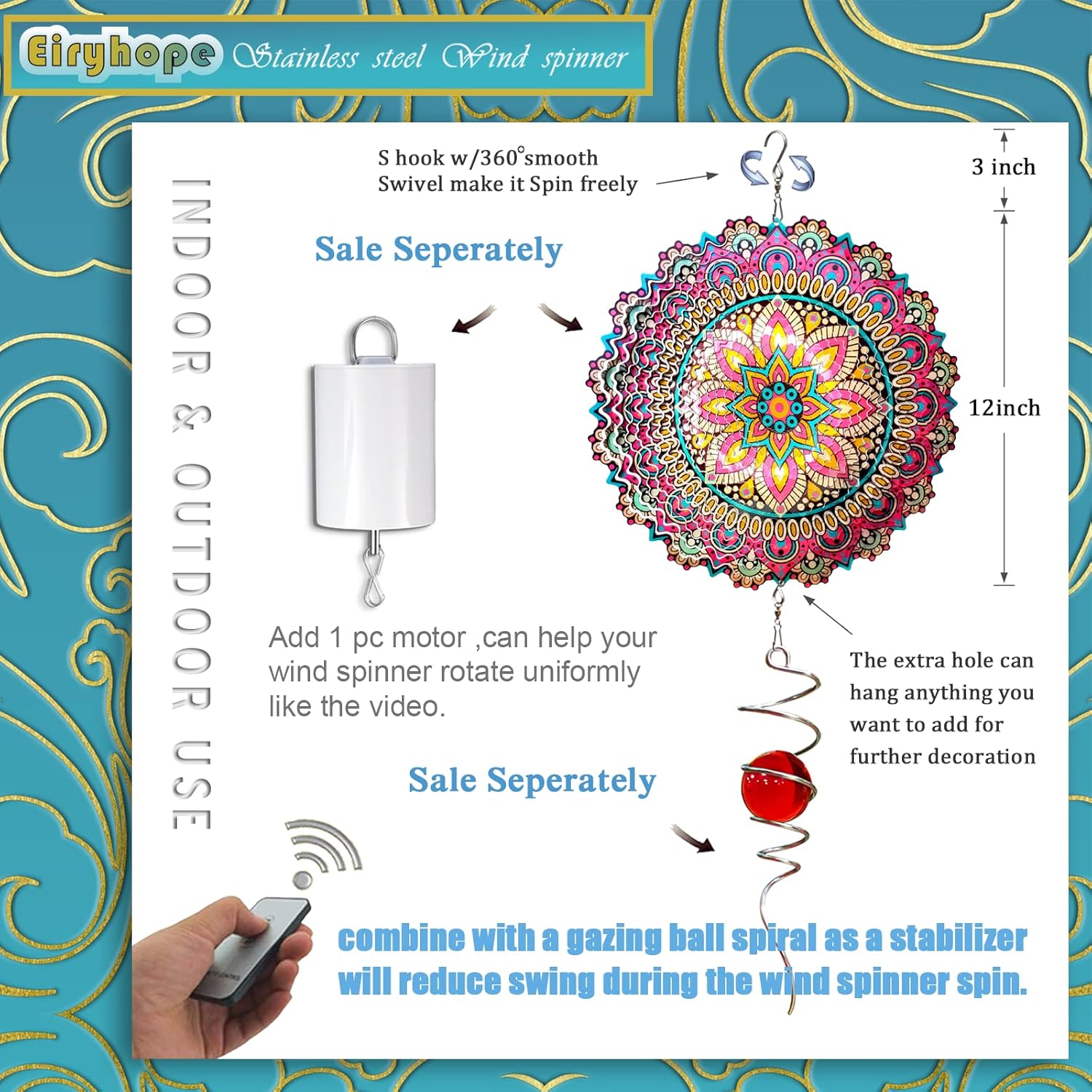 - 【Premium Kinetic Wind Spinner】Our quality wind spinner is made with high quality and durable materials. Made of stainless steel material, laser cut, hand polished and painted with epoxy protection, this stainless steel wind spinner is one of the best metal wind spinners, highly weather resistant, rust resistant and reflective. This quality outdoor decoration has incredible color and light reflections that add color, movement and beauty to indoor and outdoor spaces.