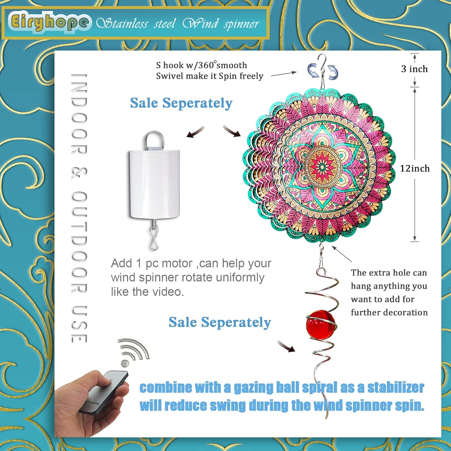 - 【Premium Kinetic Wind Spinner】Our quality wind spinner is made with high quality and durable materials. Made of stainless steel material, laser cut, hand polished and painted with epoxy protection, this stainless steel wind spinner is one of the best metal wind spinners, highly weather resistant, rust resistant and reflective. This quality outdoor decoration has incredible color and light reflections that add color, movement and beauty to indoor and outdoor spaces.