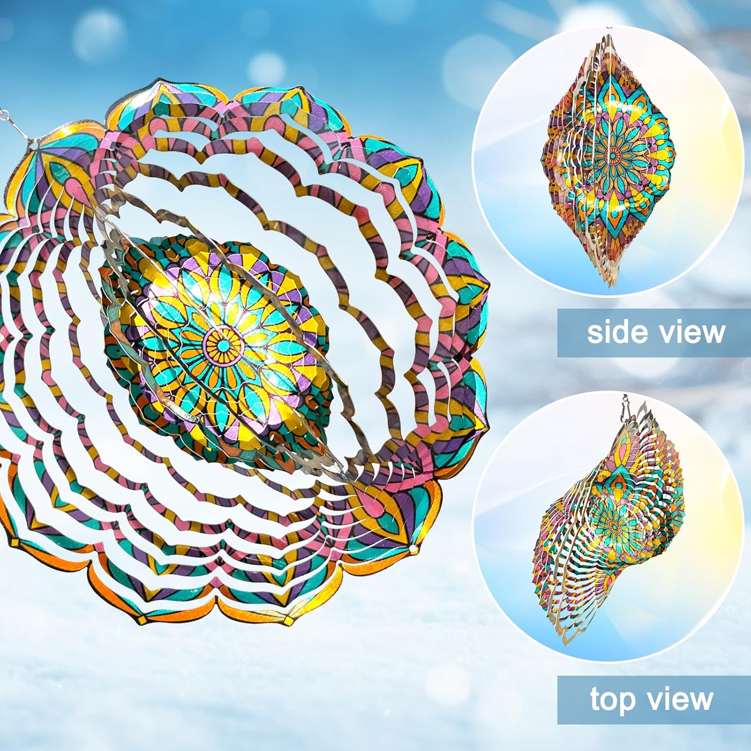 - 【Beautiful & Functional Wind Spinner】This 3D wind spinner is a versatile piece of hanging decoration. Decorative wind spinner can enhance the aesthetic appeal of your home, porch, garden or yard. This hanging decor is not noisy and will not break the quiet atmosphere and disturb the neighbors. This functional wind spinner decor is effective in soothing the eye and reducing stress. This Sparkly Wind Spinner will also keep unwanted animals away from your home or garden.
