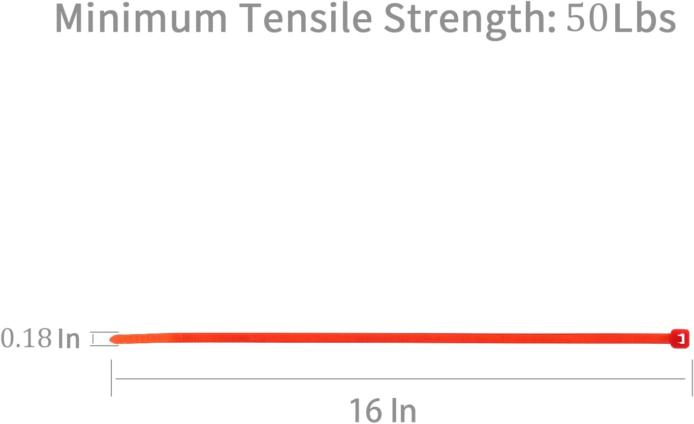 XINGO 100PCS Cable Zip Ties Heavy Duty, Premium Nylon Plastic Wire Ties with 50 Pounds Tensile Strength, Self-Locking Black Nylon Zip Ties for Indoor and Outdoor (16 inch, Red)