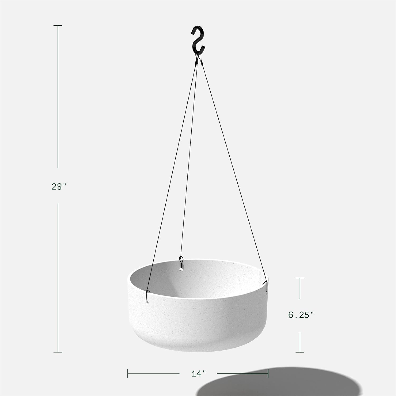 - DIMENSIONS & DETAILS: The Hanging Kona Bowl planter measures 14 Inches in diameter and 6.25 Inches in height. With the hanging attachment, it measures 28" in Height