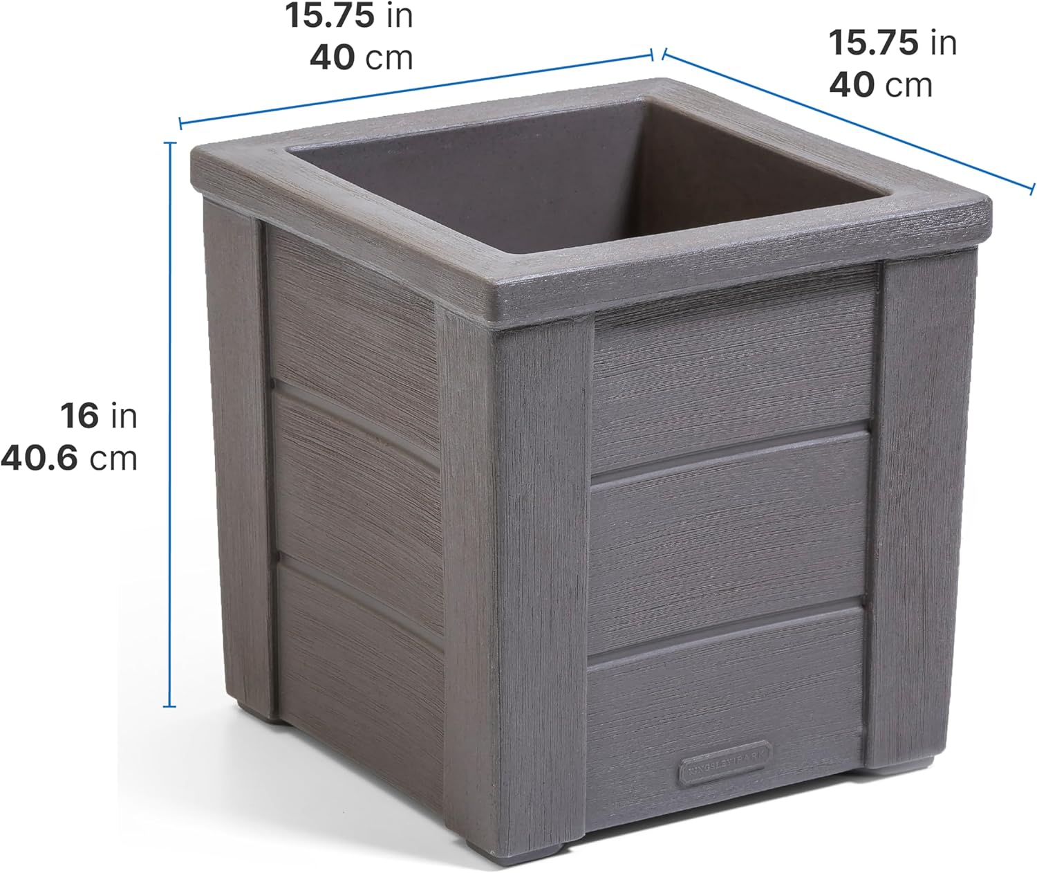 - EASY SET-UP: Comes pre-assembled and ready to use (potting soil and plants not included), holds 19 dry quarts of soil, includes 2 planters and 2 plugs, dimensions 16" H x 15.75" W x 15.75" D