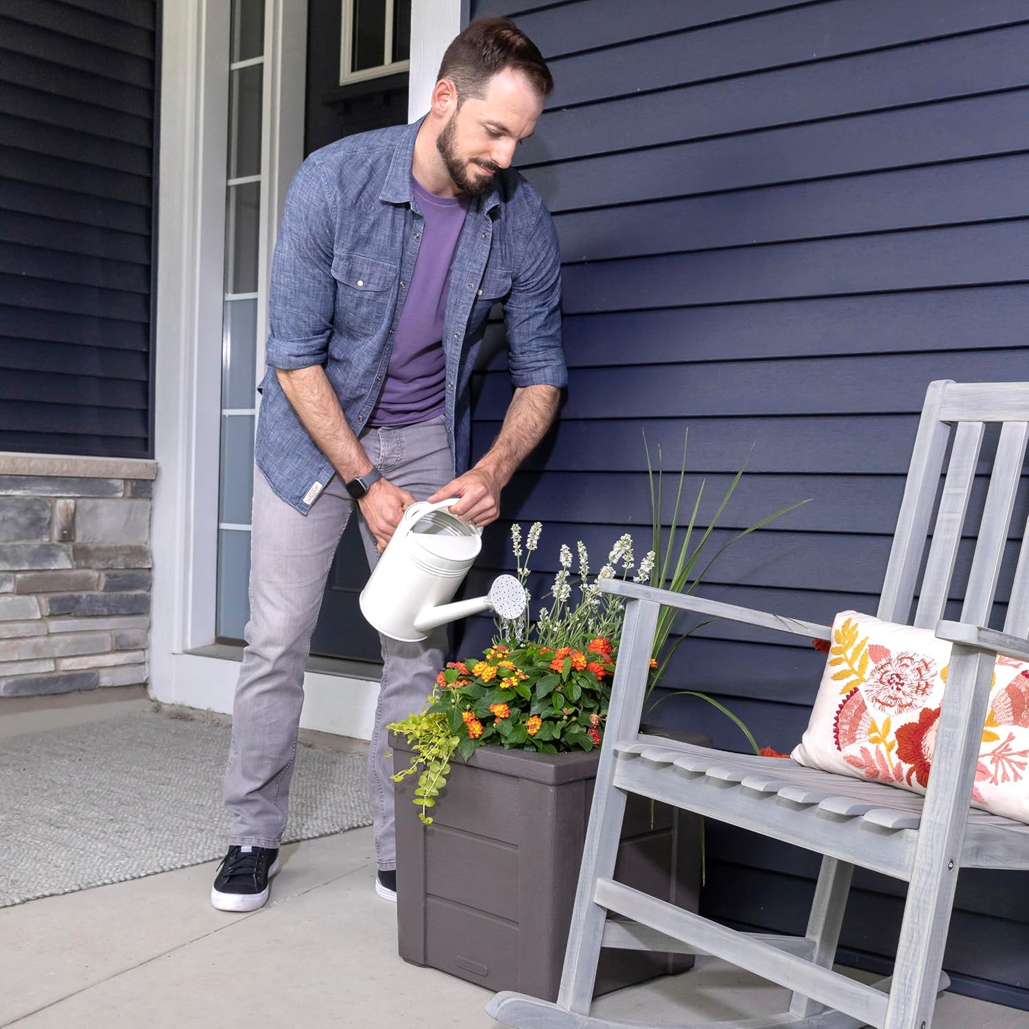 Step2 Lakewood Square Planter Box, Outside All-Season All-Weather Gardening Pot for Patio and Front Porch, Dark Cedar, 2-Pack
