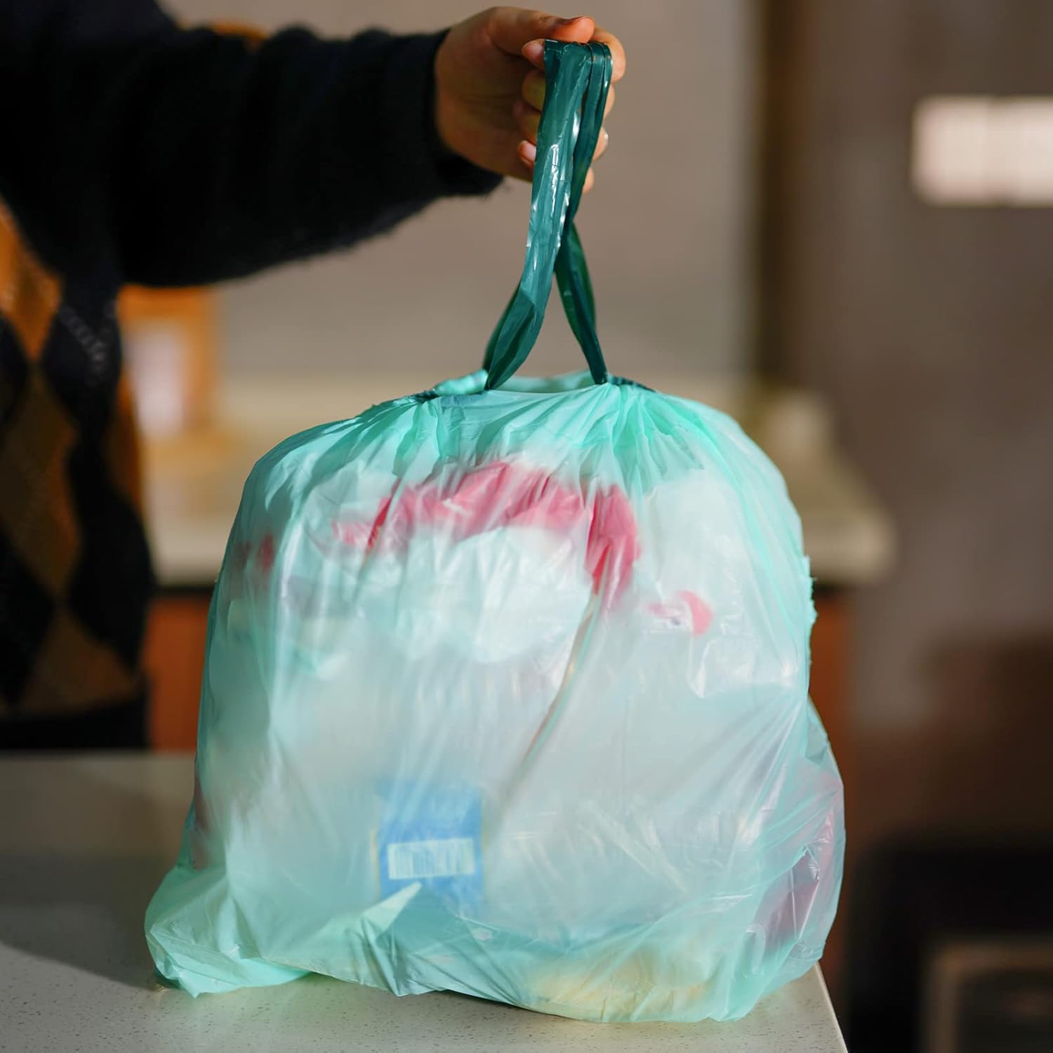- Our biodegradable trash bags feature a drawstring design for added convenience. They are sturdy and leak-proof, making them ideal for kitchen waste, office wastebaskets and everyday household use.