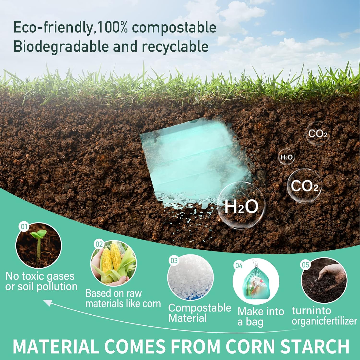 Biodegradable drawstring trash bags, 4 Gallon, 100% Compostable garbage bags wastebasket liners bags for kitchen bathroom office garden,US BPI ASTM D6400 and Europe OK Compost Home Certified