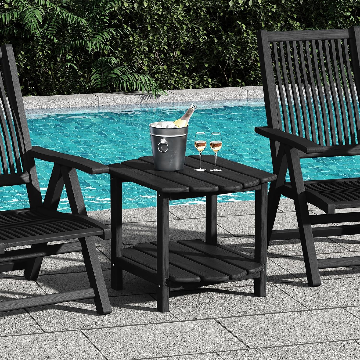 Small Outdoor Side Tables Modern 2-Tier Adirondack Table Rustic End Table HDPE Storage Shelf Industrial Corner Rectangle Coffee Table for Patio Garden Balcony Backyard Pool Farmhouse Home Black